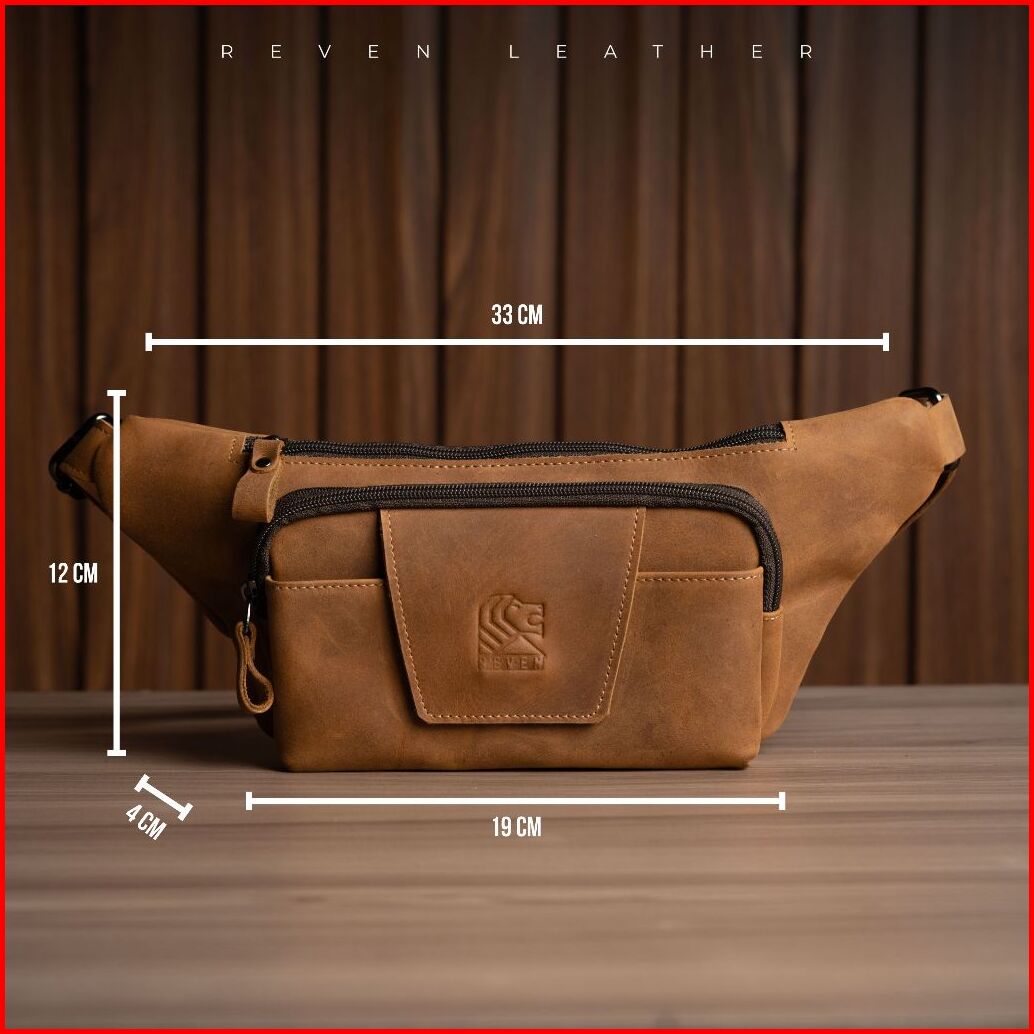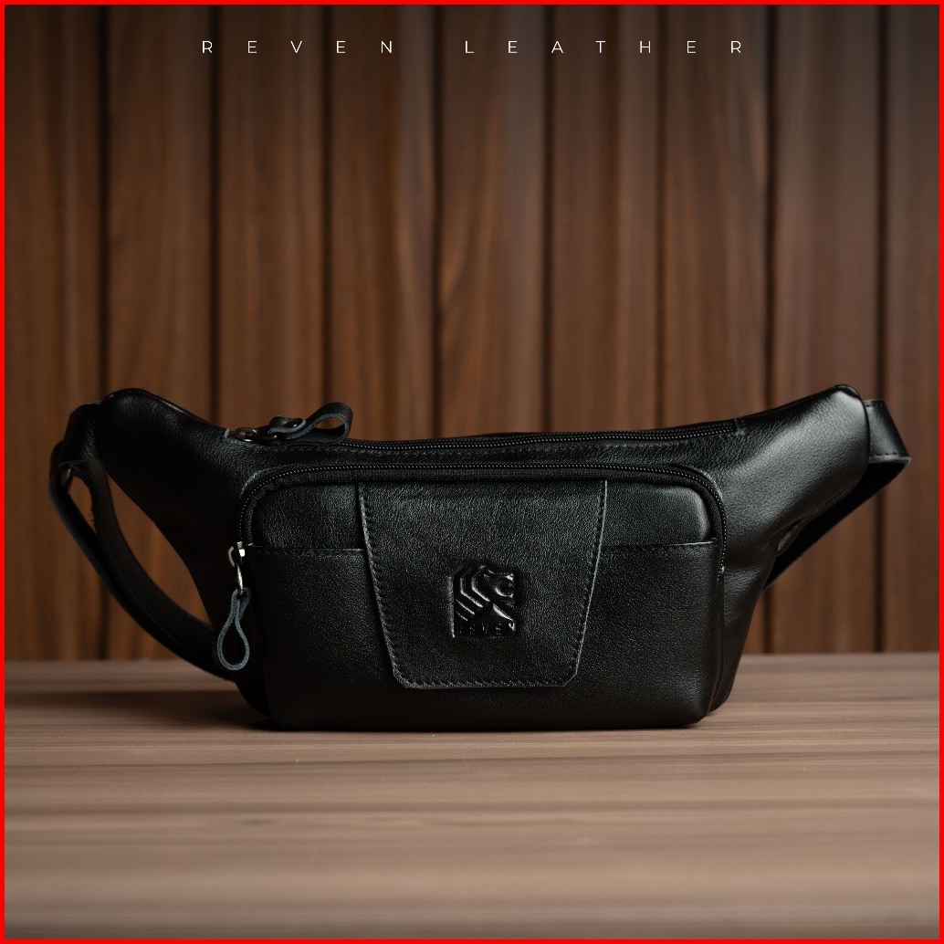 Reven Leather Mahameru Waist Bag - Tas Pinggang Pria Kulit Sapi Asli Free Random Gift