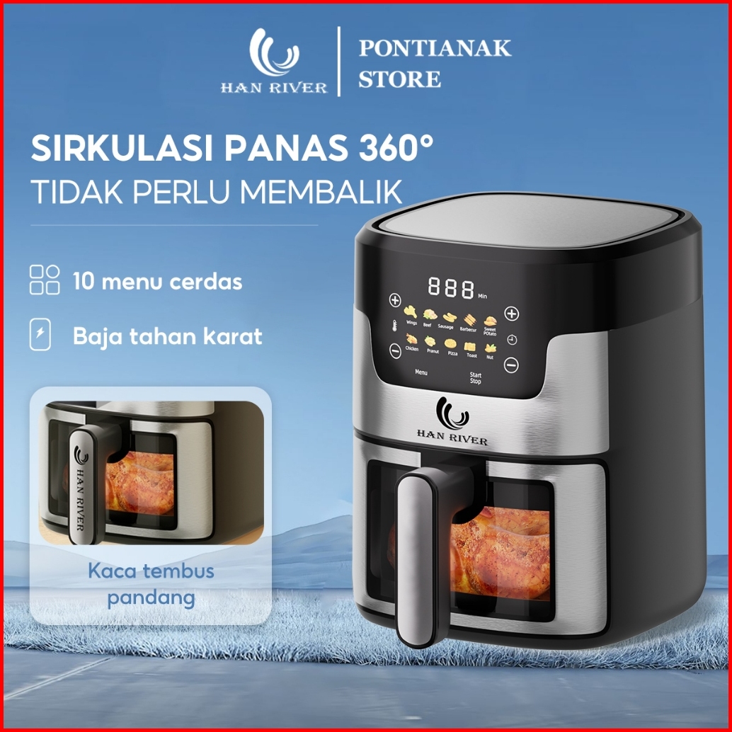 Pengiriman Dari Pontianak Han River Air Fryer 8l Touch Screen Digital Air Fryer Low Watt 600w