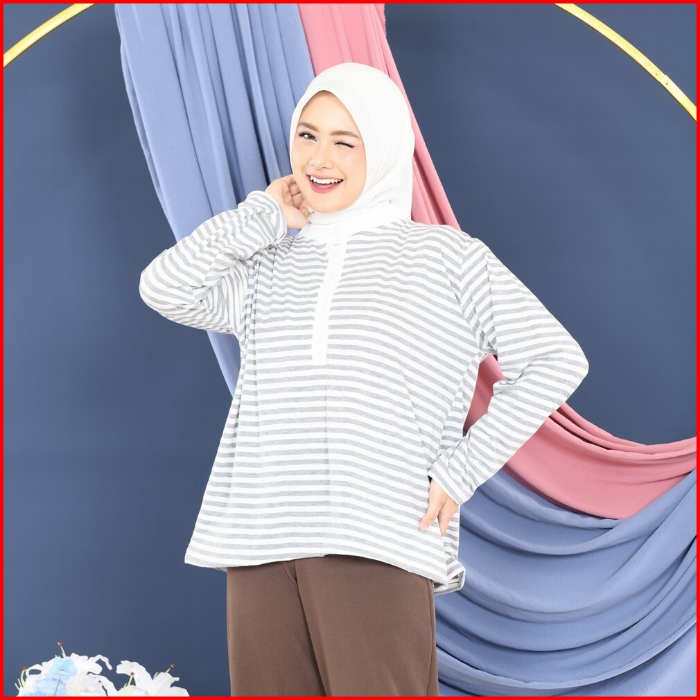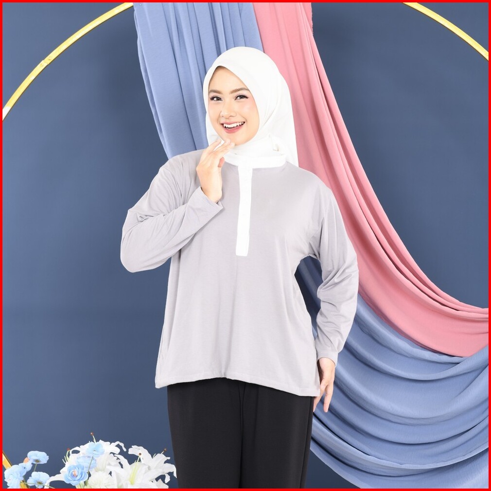 Mybamus Naka Tops Atasan Kaos Wanita Lengan Panjang Kancing