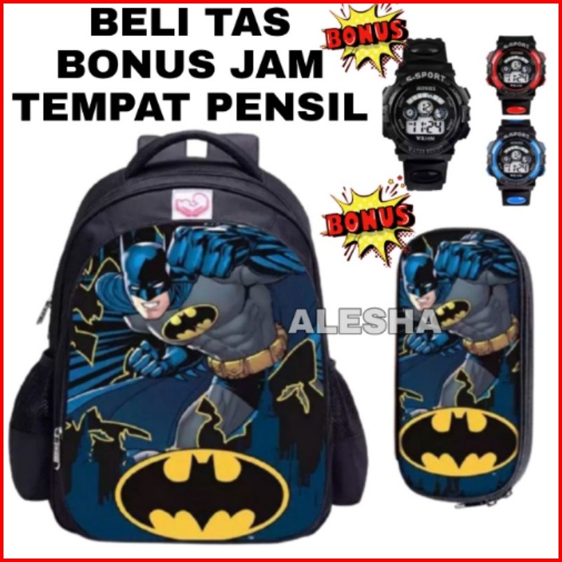 Tas Ransel Fashion Sekolah Anak Laki Laki Paud Tk Sd Marvel Super Hero Freeee Fireee Batmn Bonus Jam Tangan