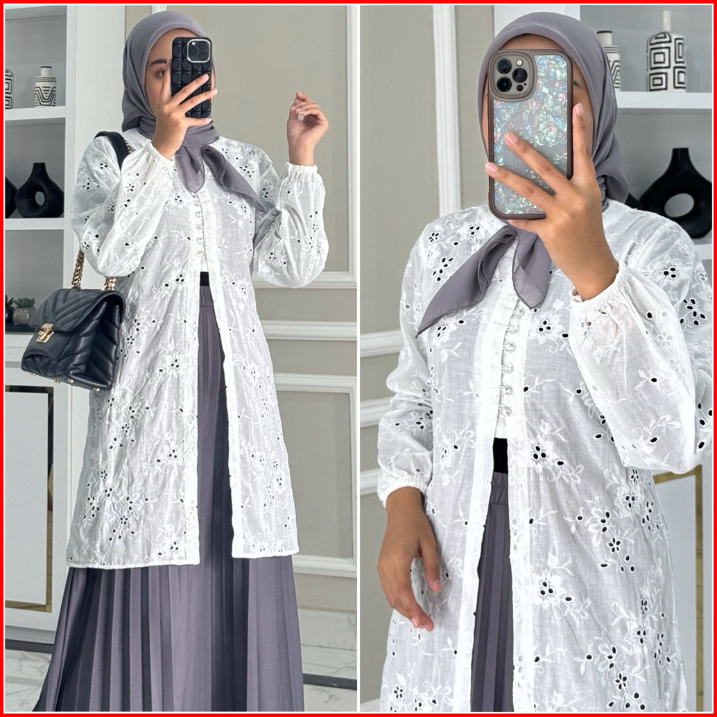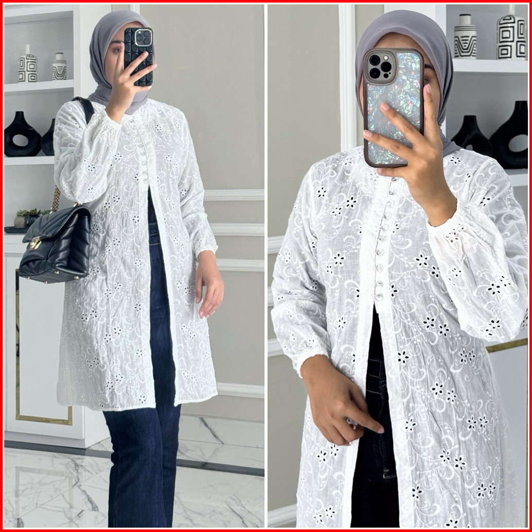 Calista Tunik By Zalfa Outfit Baju Atasan Wanita Muslim Tunik Kerja Kuliah Polos Katun Bordir Premium Lengan Panjang Kar