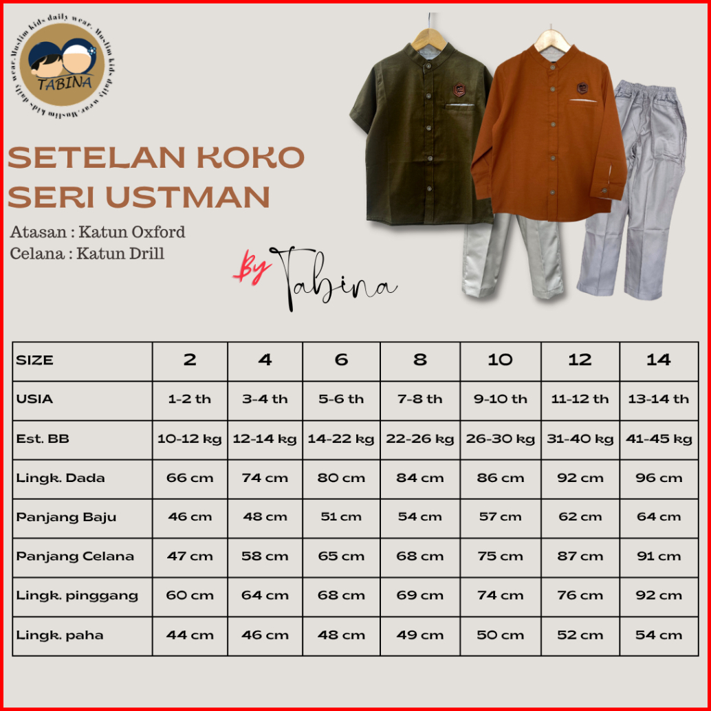 Setelan Kemeja Lengan Pendek Tabina Seri Ustman Anak Laki Laki Usia 1 - 16 Tahun Remaja