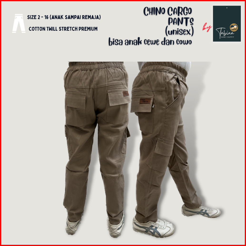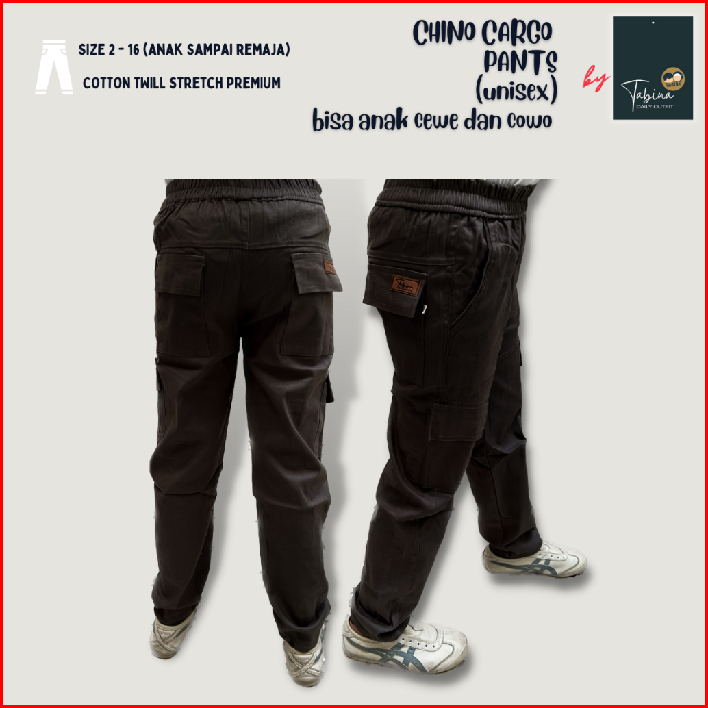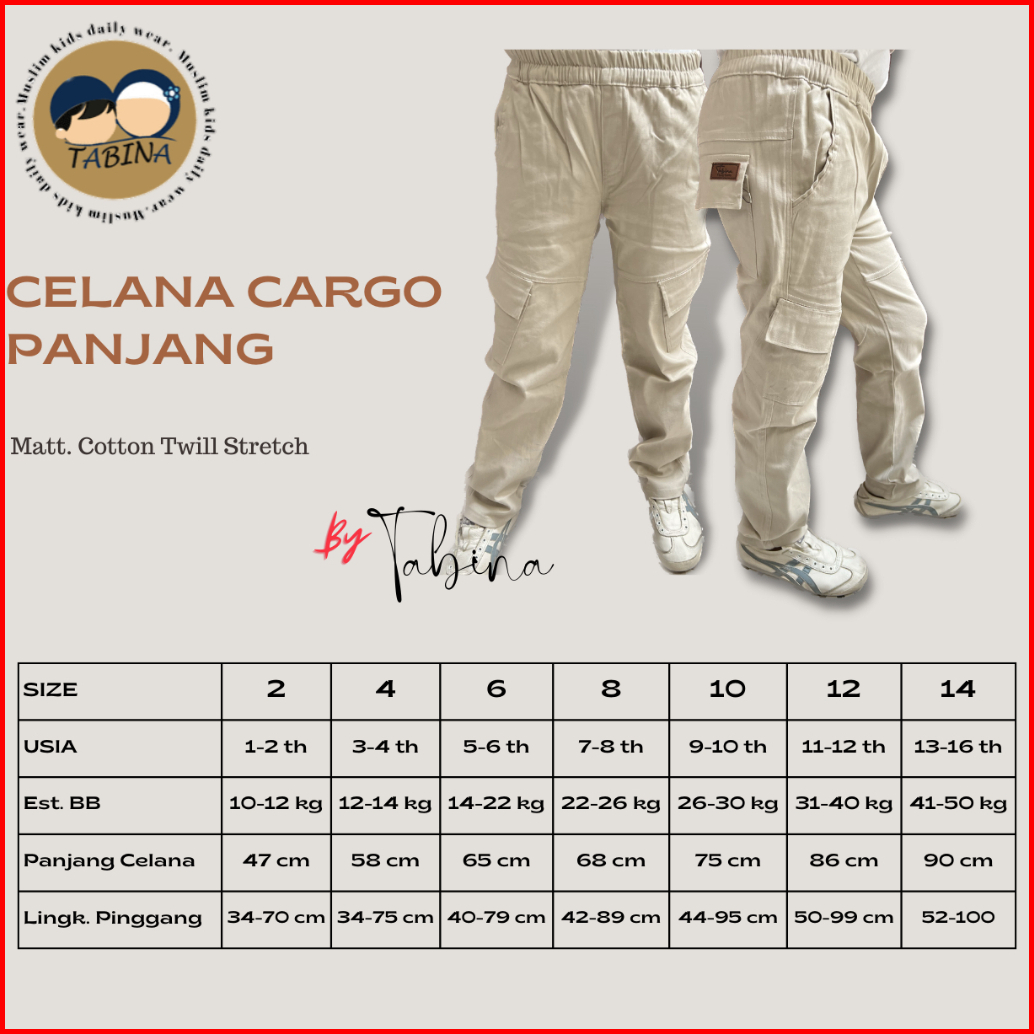 Celana Cargo Panjang Anak Tabina Bahan Katun Twill Usia 2 Hingga Remaja 16 Tahun