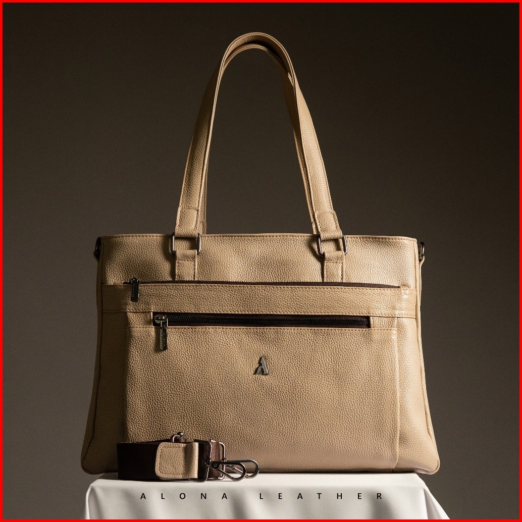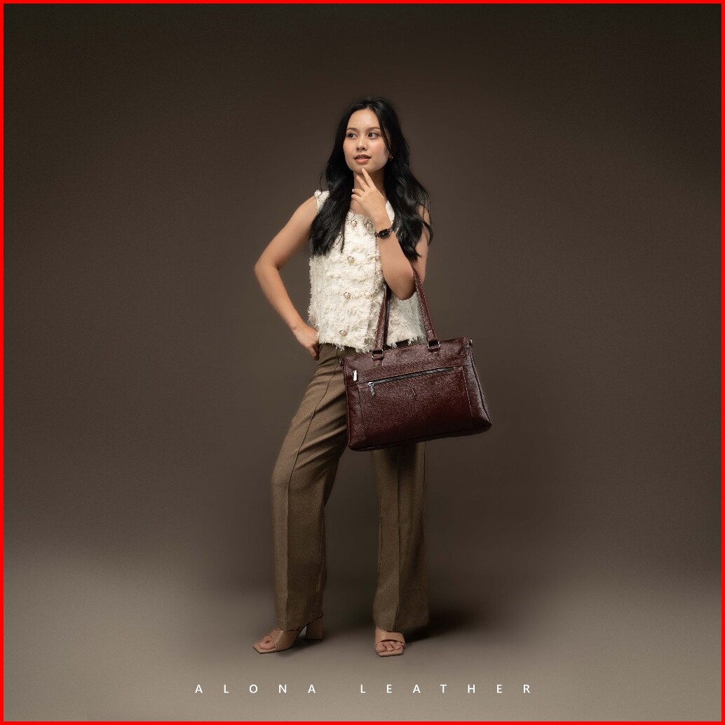 Alona Leather Lovata Totebag - Tas Laptop Wanita Kulit Sapi Asli Free Random Gift Tali Selempang