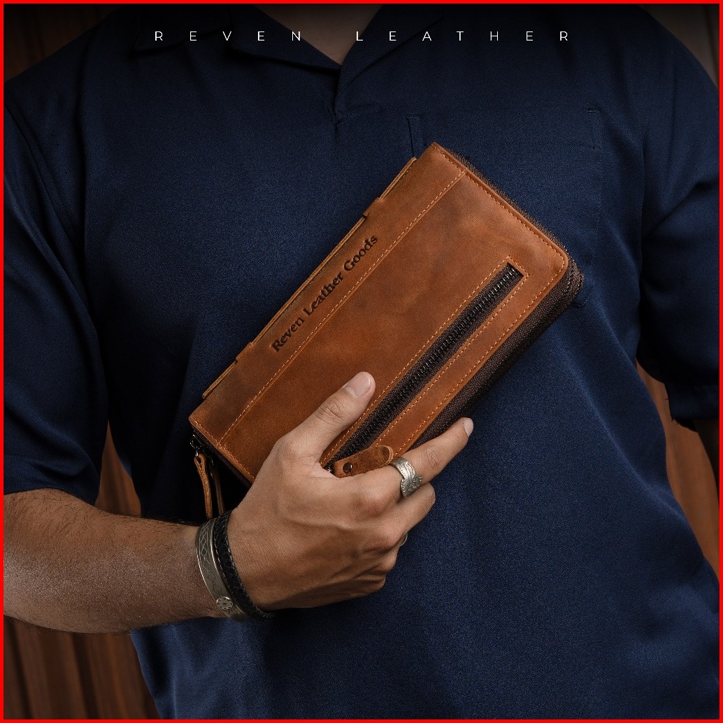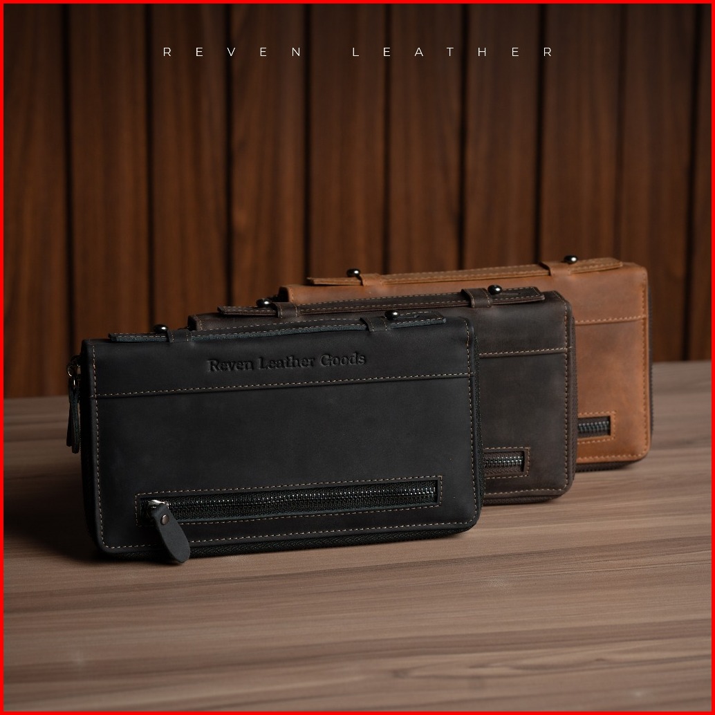 Reven Leather Benicio Handbag - Tas Tangan Clutch Pria Kulit Sapi Asli Free Random Gift