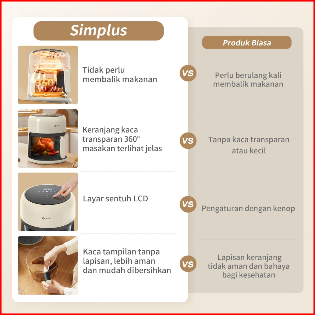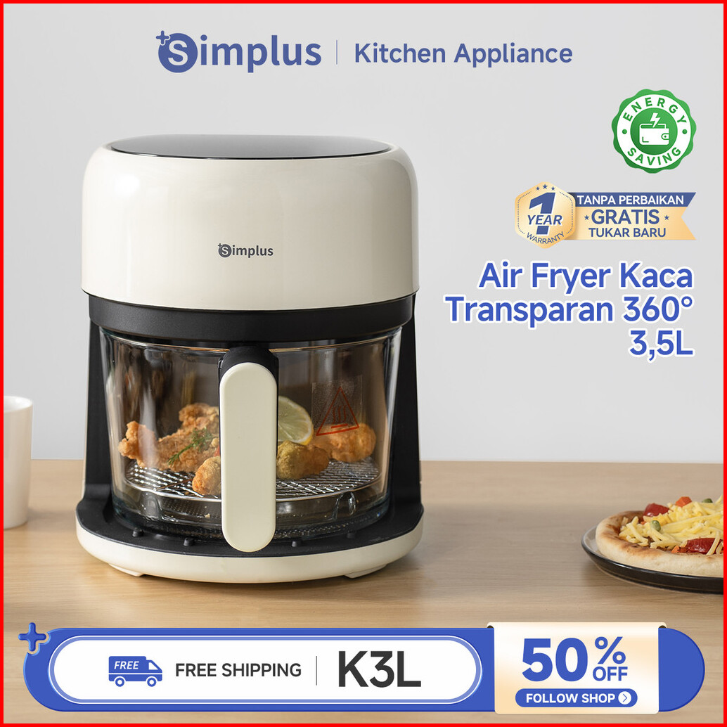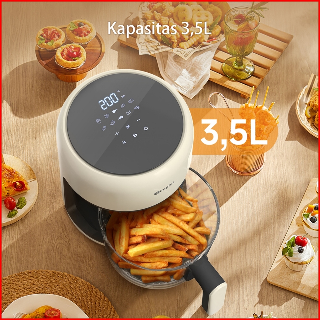 Simplus Air Fryer Low Watt 650w 3 5l Digital Touch Screen Panoramic Glass 360 View