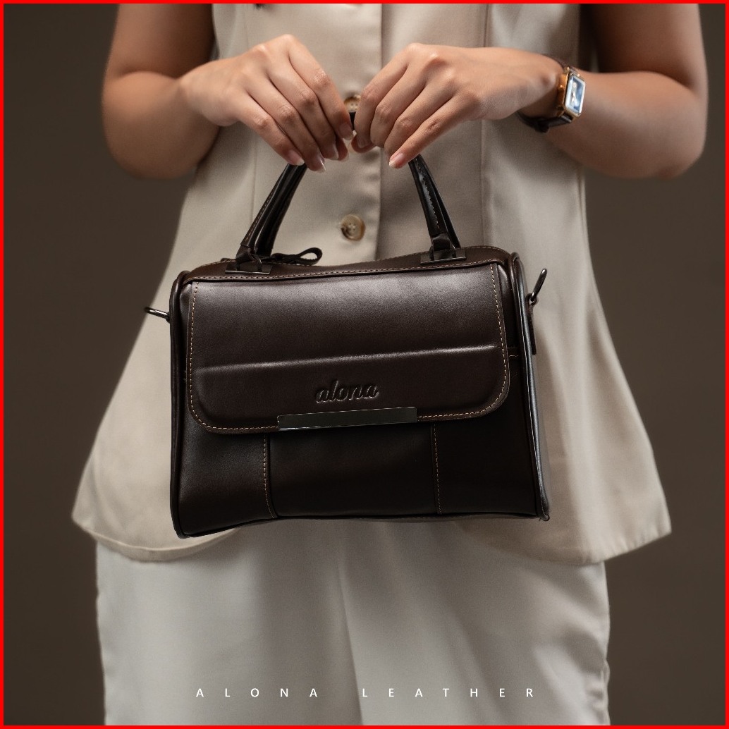 Alona Leather Hestia Bag - Tas Selempang Jinjing Wanita Kulit Sapi Asli Free Random Gift