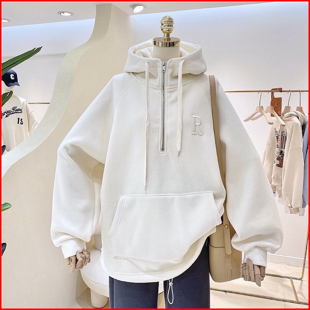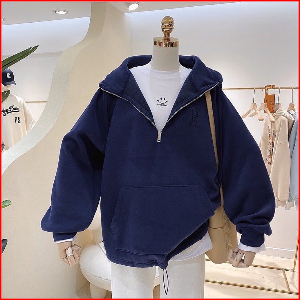 Vallina - R Bordier Half Zipper Sweater Hoodie Oversized Outerwear Remaja Wanita Korean Style Premium