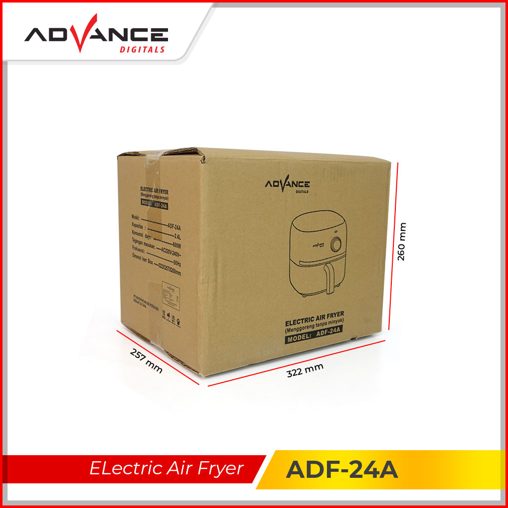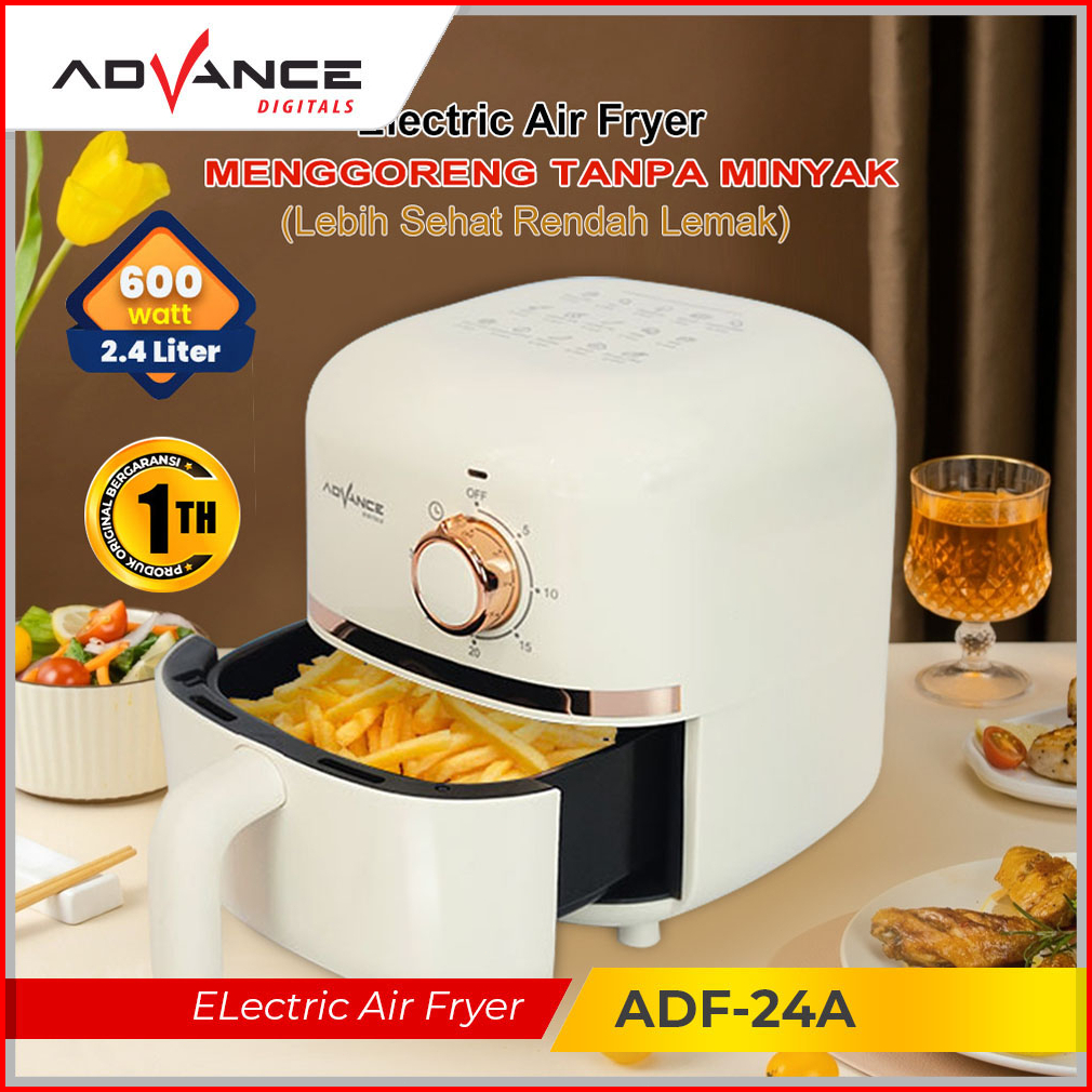 Advance Air Fryer Adf-24a Kapasitas 2.4l Menggoreng Tanpa Minyak Low Watt 600 Watt Garansi 1 Tahun