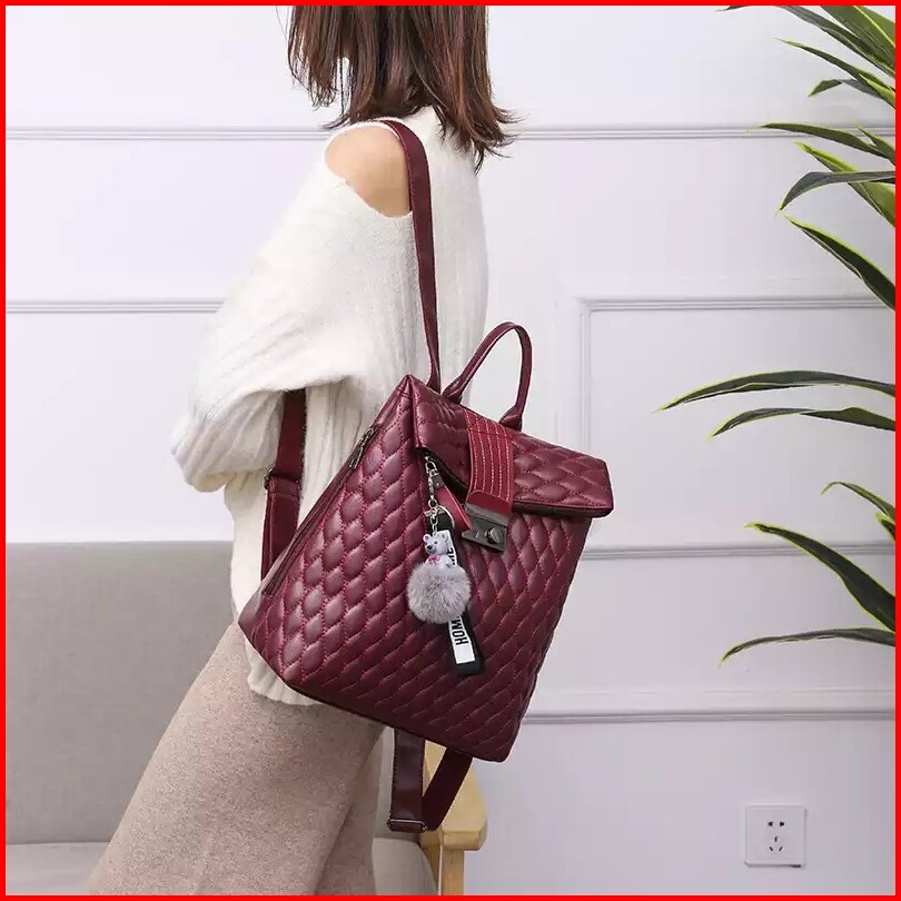 Rr Menzel- Tas Ransel Backpack Fashion Wanita Free Pompom