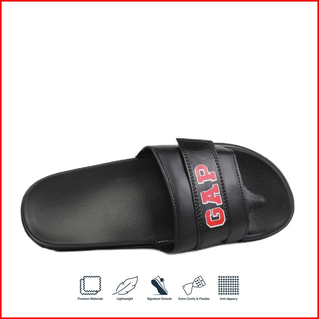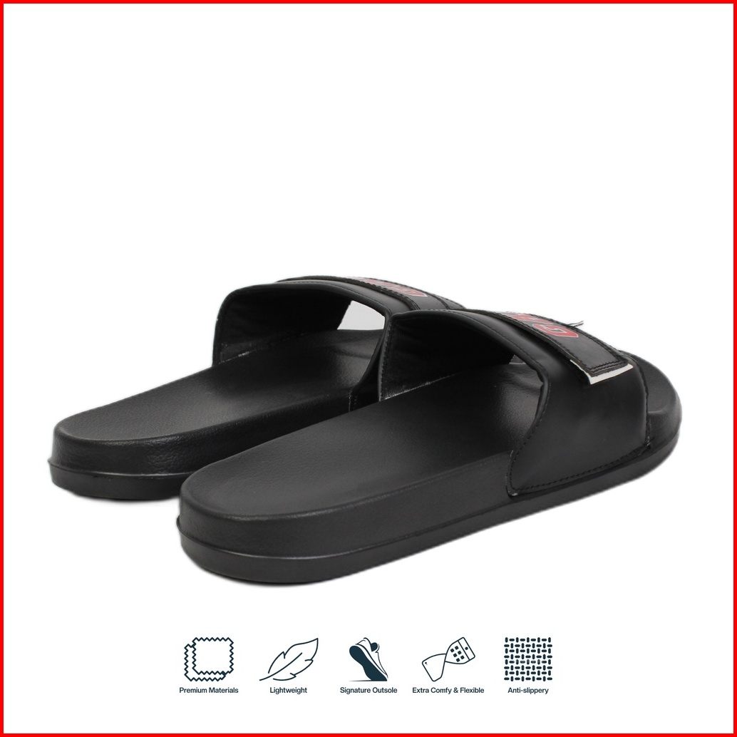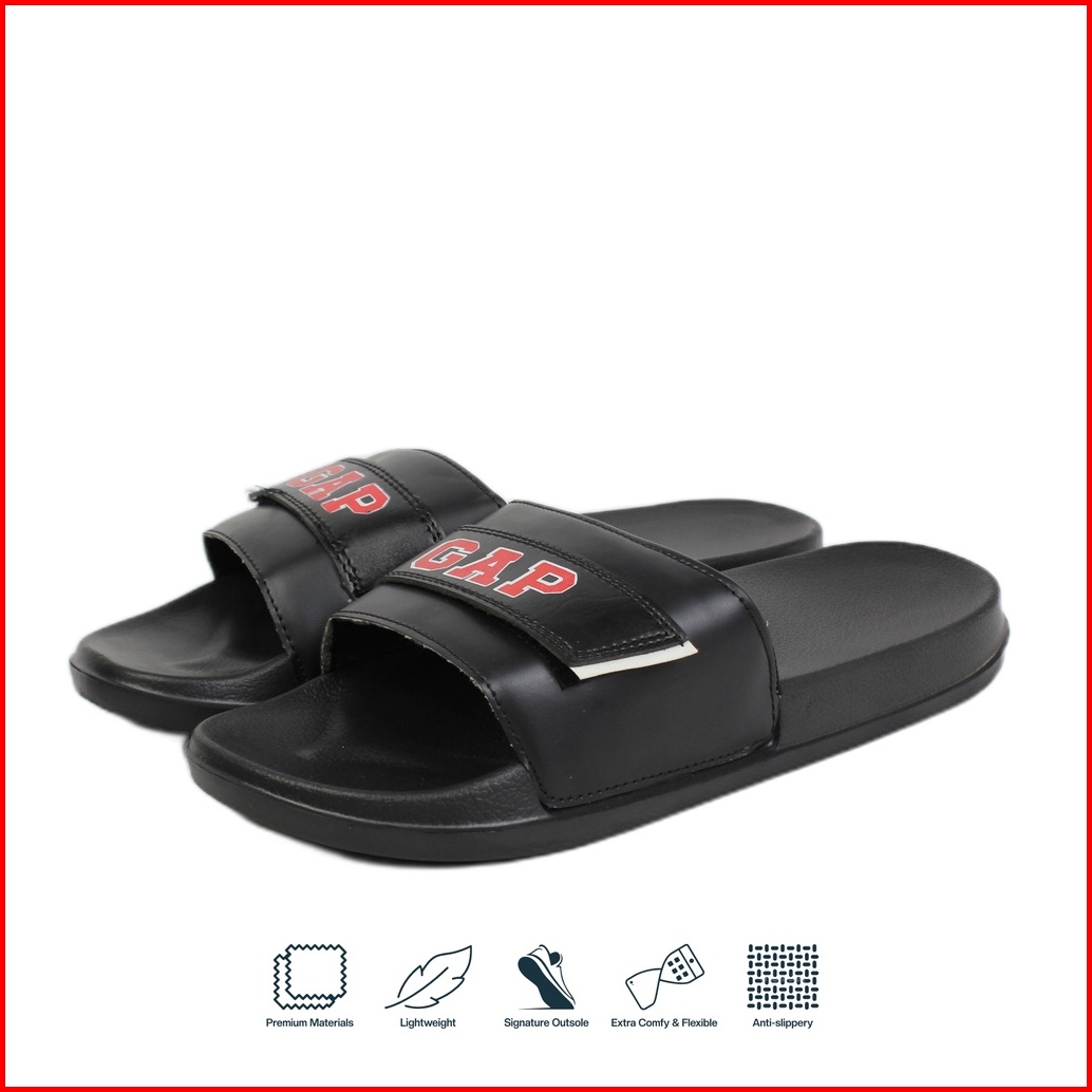 Sandal Pria Sandal Slide Sandal Slop Pria Velcro Tengah - Black
