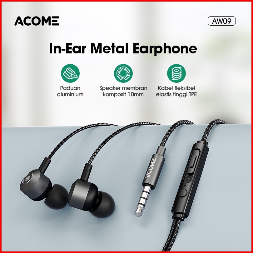 Acome Wired In Ear Metal Earphone Headset Super Bass Strong Material Aluminium Material Speaker Hd 10mm Aw09