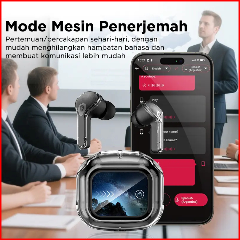 Wireless Bluetooth Headphones Xp16 Earphone Bluetooth Nirkabel Layar Led Earbud Penerjemah Cerdas Ai Headset Bluetooth E