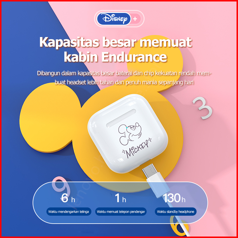 Disney Pro4 Fx-951b True Wireless Bluetooth V5.3 Lucu Tws True Wireless Earphone Mini Earbuds Hifi Stereo Sound Volume C