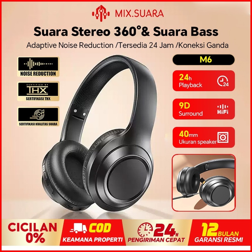 Garansi 3 Tahun Mix.suara Handset Bluetooth Tahan Lama Headphone Gaming Bluetooth 5.3 Hifi Super Bass With Mic Hd Noise