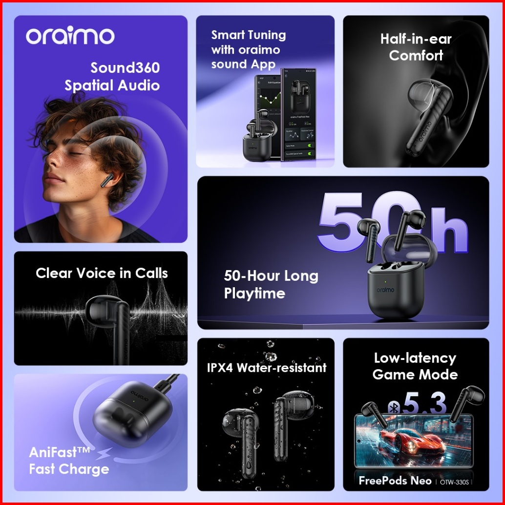 Oraimo Tws Freepods Neo Otw-330s Bluetooth V5.3 True Wireless Stereo Bluetooth Enc Headphone Gaming Earbud Latensi Renda