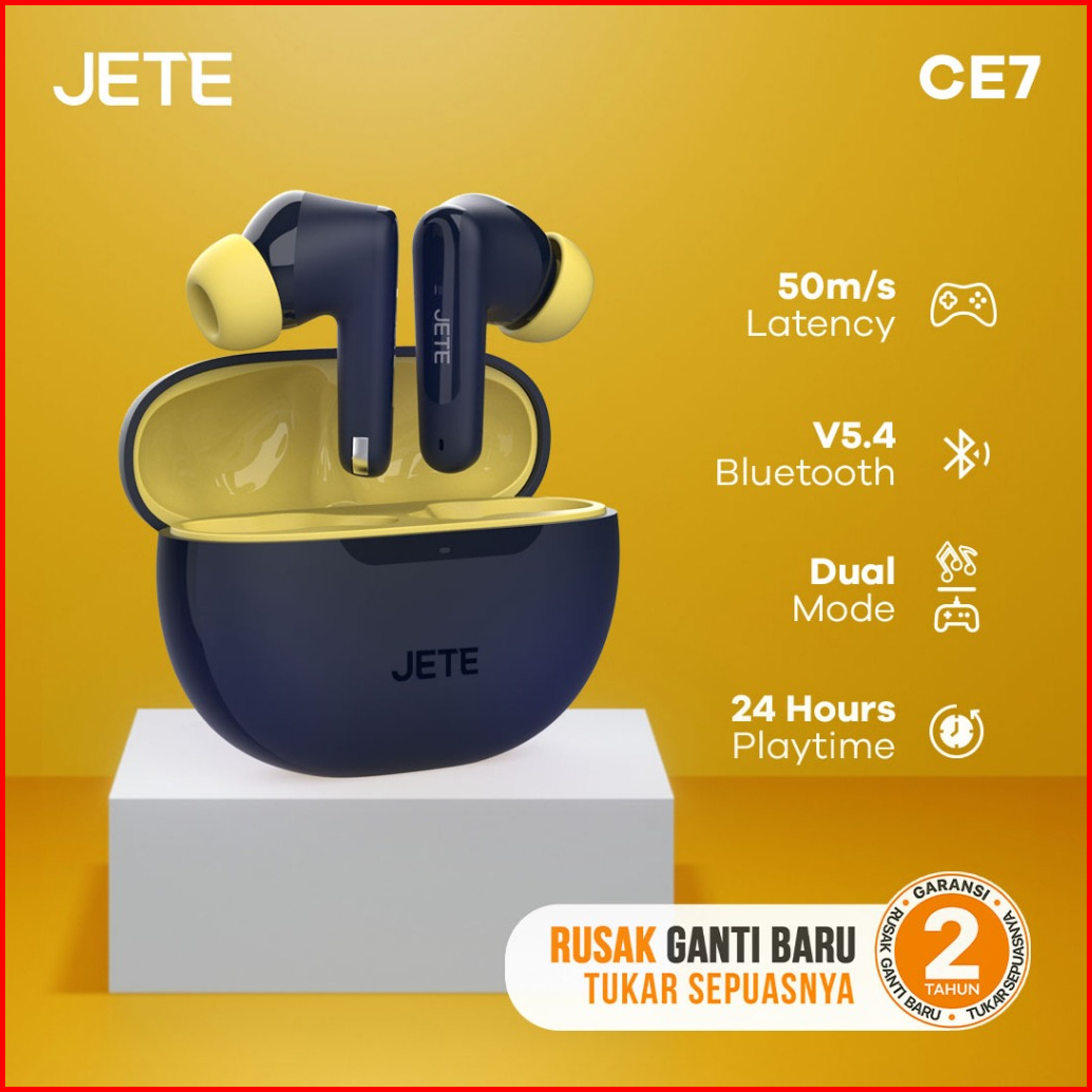 Jete Ce7 Tws Earbuds Headset Bluetooth 5.4 Playtime 24h Dual Mode Gaming Music Garansi 2 Tahun