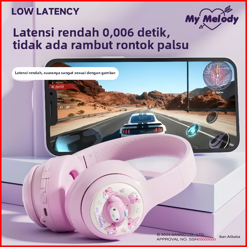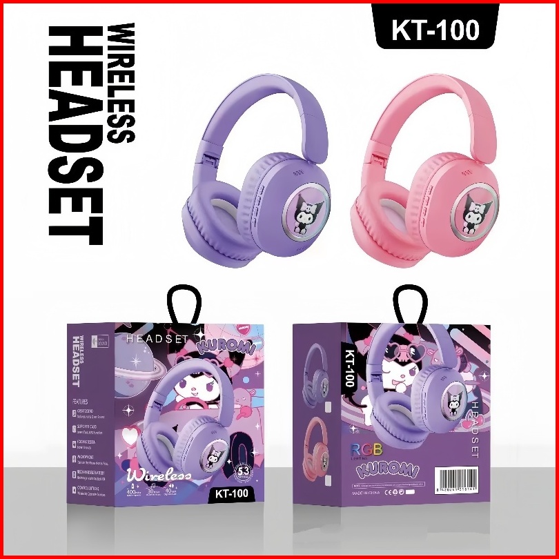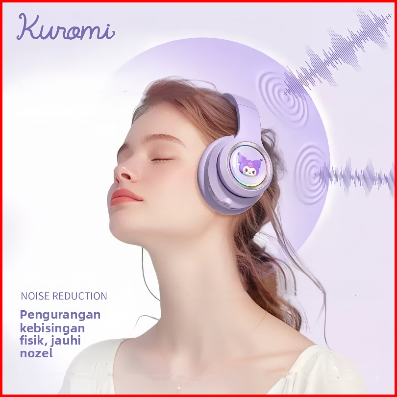 Rccor Headset Bluetooth Gaming Kuromi - Desain Imut Bass Keras Bisa Pake Microsd Bonus Stiker Lucu