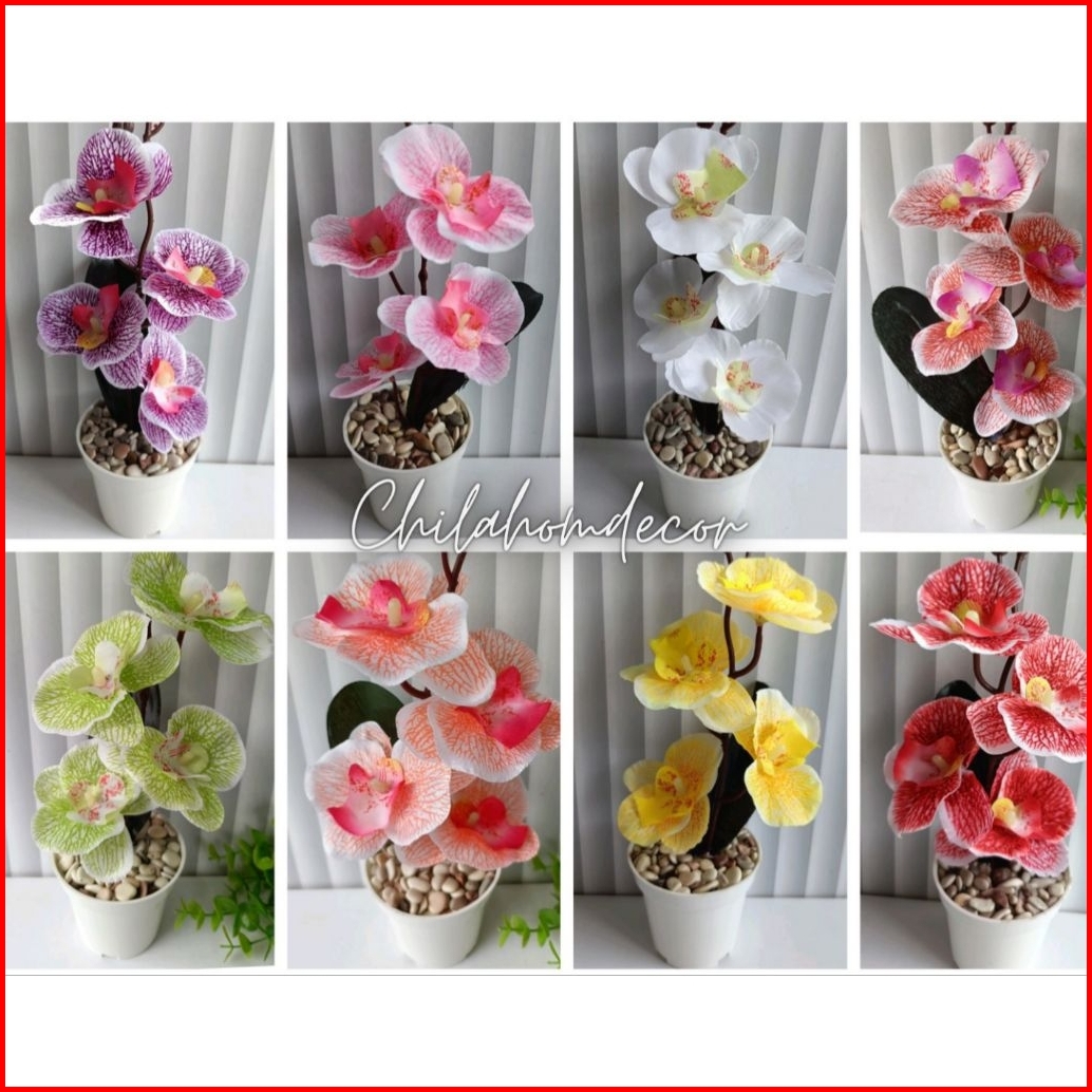 Paket Hiasan 5 Anggrek Warna Bunga Rendom Pot