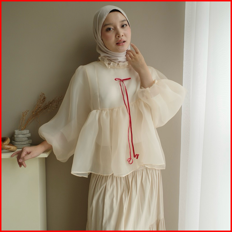 Leviora Bulan Baik Baby Doll Blouse Silk Organza Upgraded Size