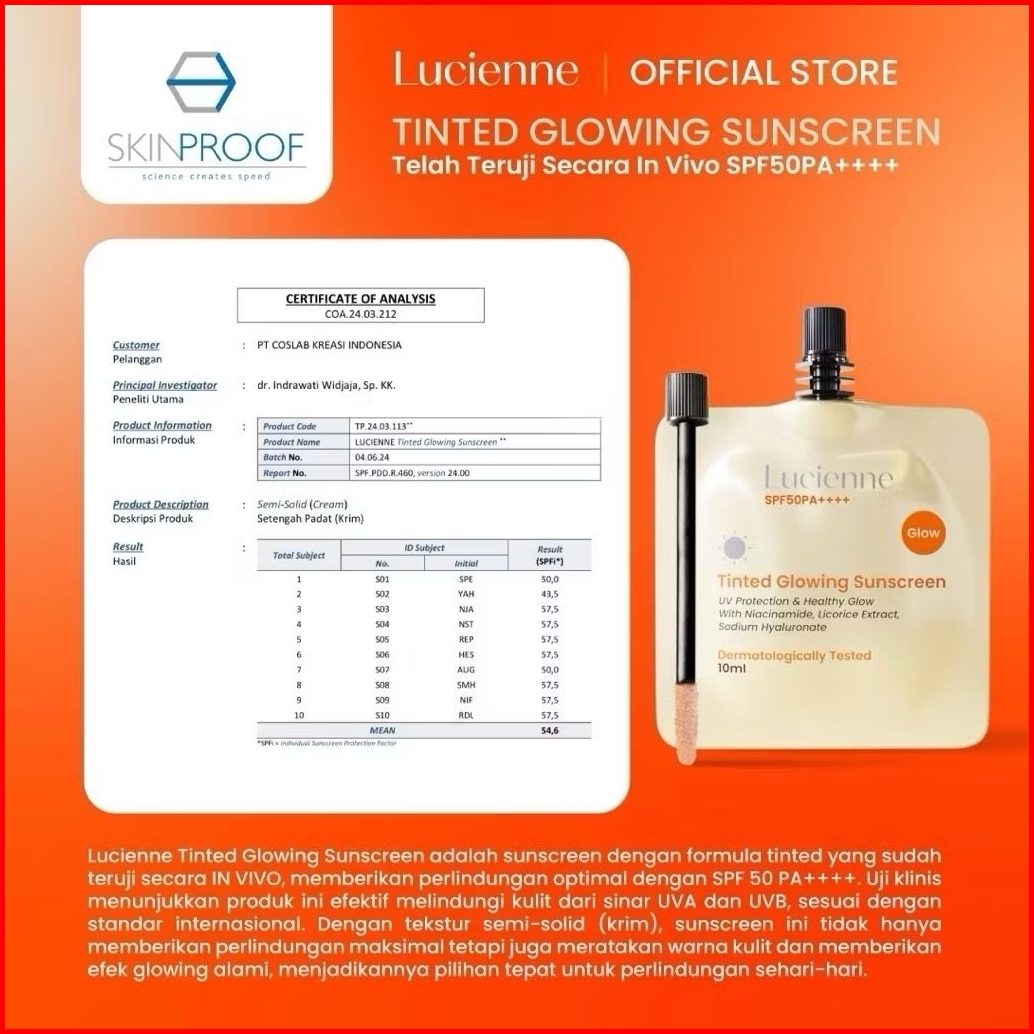 Lucienne Tinted Glowing Sunscreen Spf 50 Pa Travel Size 10ml Wajah