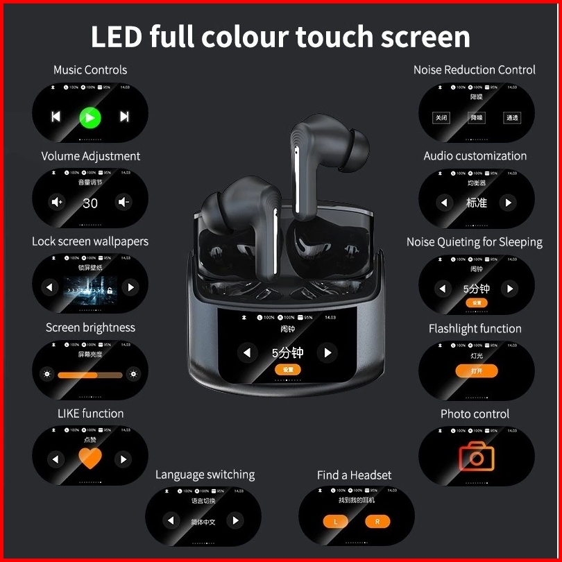 Xke R06 Headset Bluetooth Layar Sentuh Pintar Panggilan Hd Pengurangan Kebisingan Otomatis
