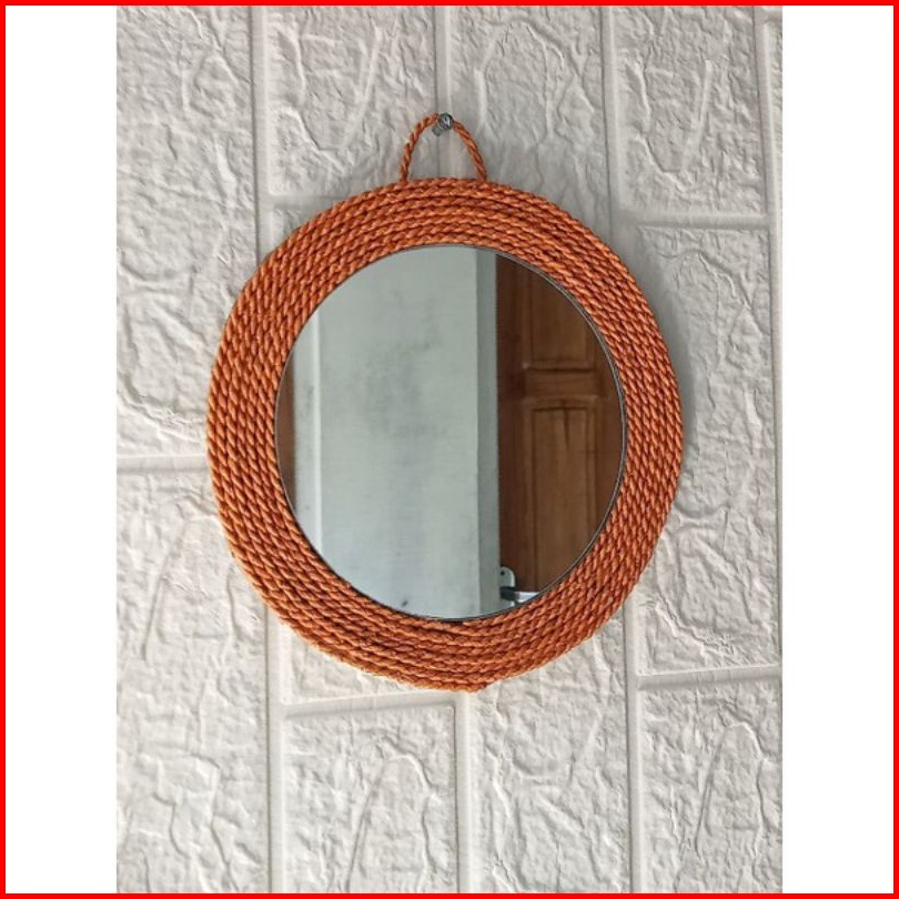 Kaca Cermin Aesthetic Bulat Dekorasi Hias Dinding Anyaman