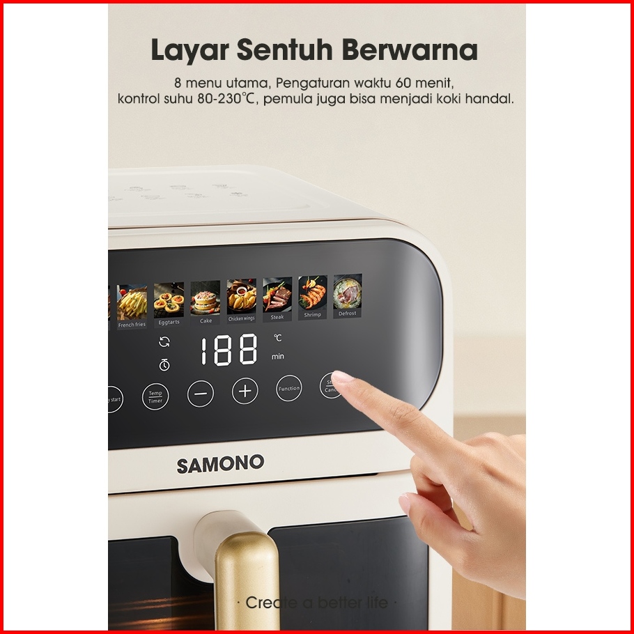 Samono Air Fryer Oven Touch Screen 6 5 Liter Low Watt Body Metal Dengan Kaca Garansi 1 Tahun Sw-afw65