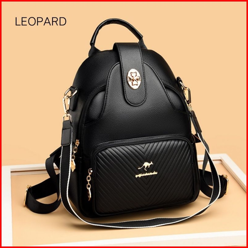 Tas Wanita Ransel Hitam Kulit Backpack Kasual Tas Sekolah Untuk Remaja