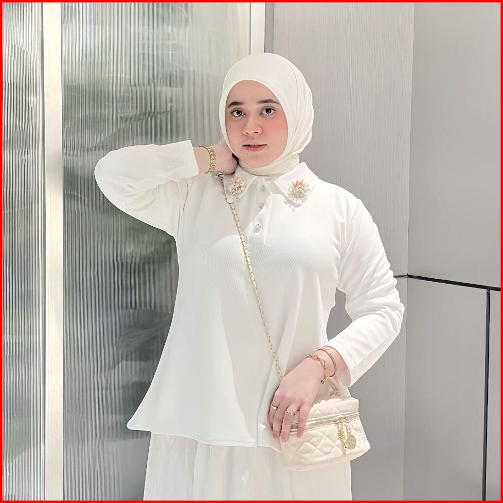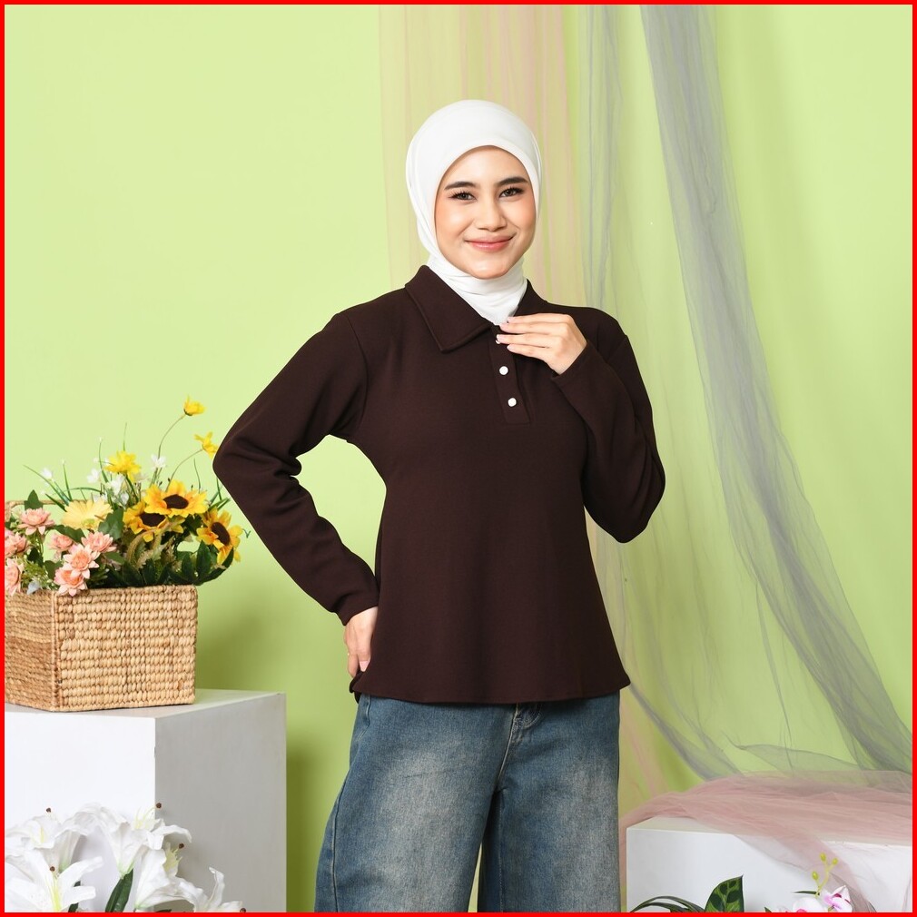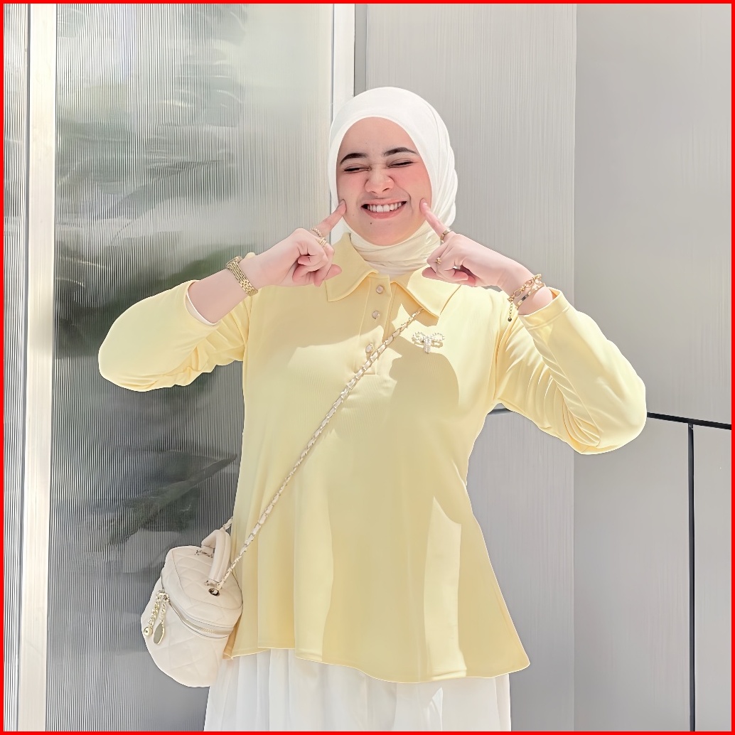 Mybamus X Syarifahkhairatunnisa Rara Knit Top Slimfit Atasan Wispie Peplum Wanita Lengan Panjang