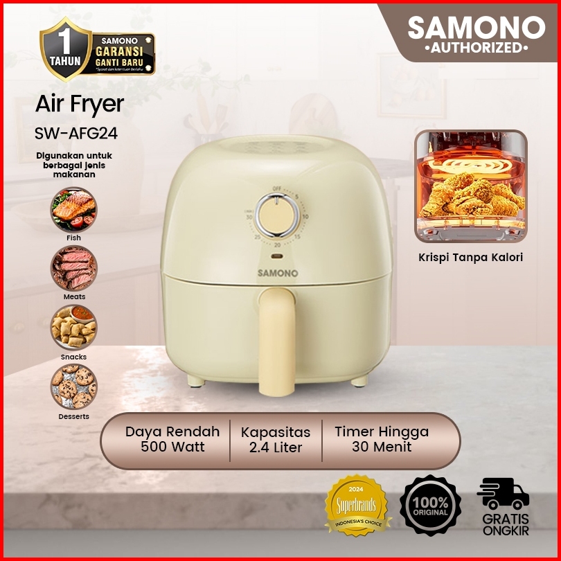 Samono Mini Air Fryer 2.4 Liter Airfryer Low Watt Mesin Penggorengan Tanpa Minyak Garansi Resmi 1 Tahun Sw-afg24 Garansi