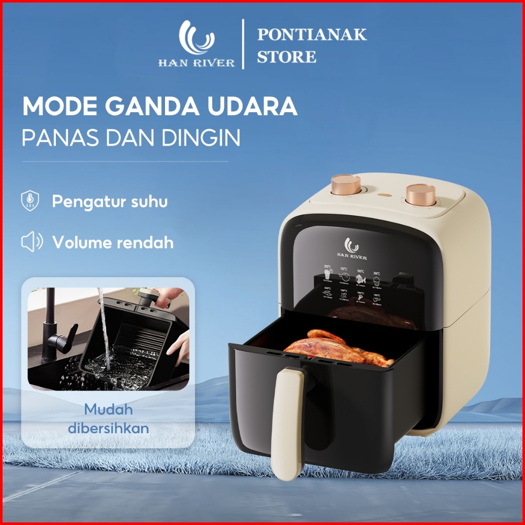 Pengiriman Dari Pontianak Han River Air Fryer 4.2l Dual Knob Control 800w Wajan Anti Lengket