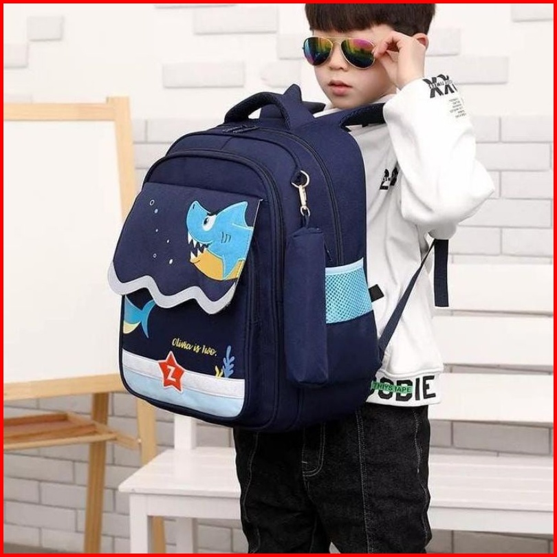 Winben Fashion-tas Ransel Anak Sekolah Laki Laki Sd Tk Paud Motif Kartun Hiu