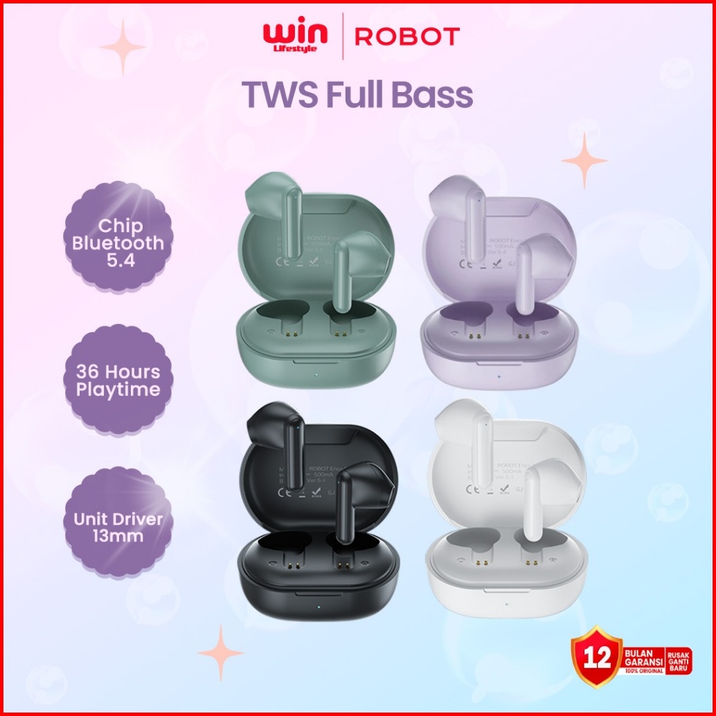 Robot Enco Buds 1 Tws Powerfull Bass Semi In-ear Mini Earbuds Bluetooth 5.4 Headphones In Mic Tws Sport Original - Garan