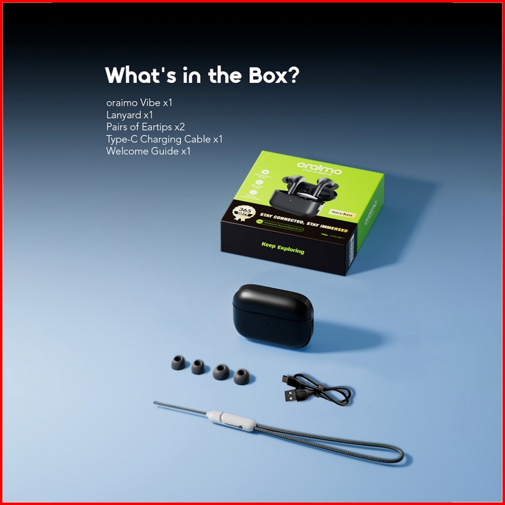 Oraimo Vibe Otw-3001 Earphone V5.2 Bluetooth Stereo Nirkabel Bass Havy Hitam Earphone Tws Bluetooth Gaming Full Bass Tru