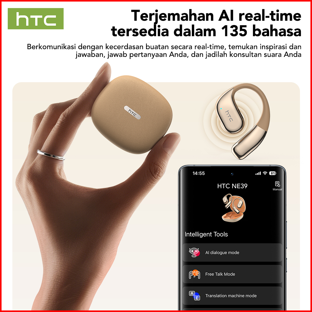 Htc Ne39 Earphone Bluetooth Ai Cerdas Tws Nirkabel Peredam Bising Ipx5 Tahan Air Suara Jernih Hifi Headset Wireless Pint