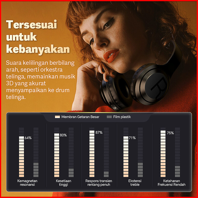 Manu 12 Bulan Garansi Wireless Earphone Bluetooth 5.3 Foldable Headset Bluetooth Ultra Bass Sound Noise Cancelling Gamin