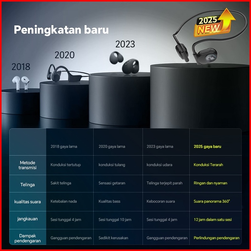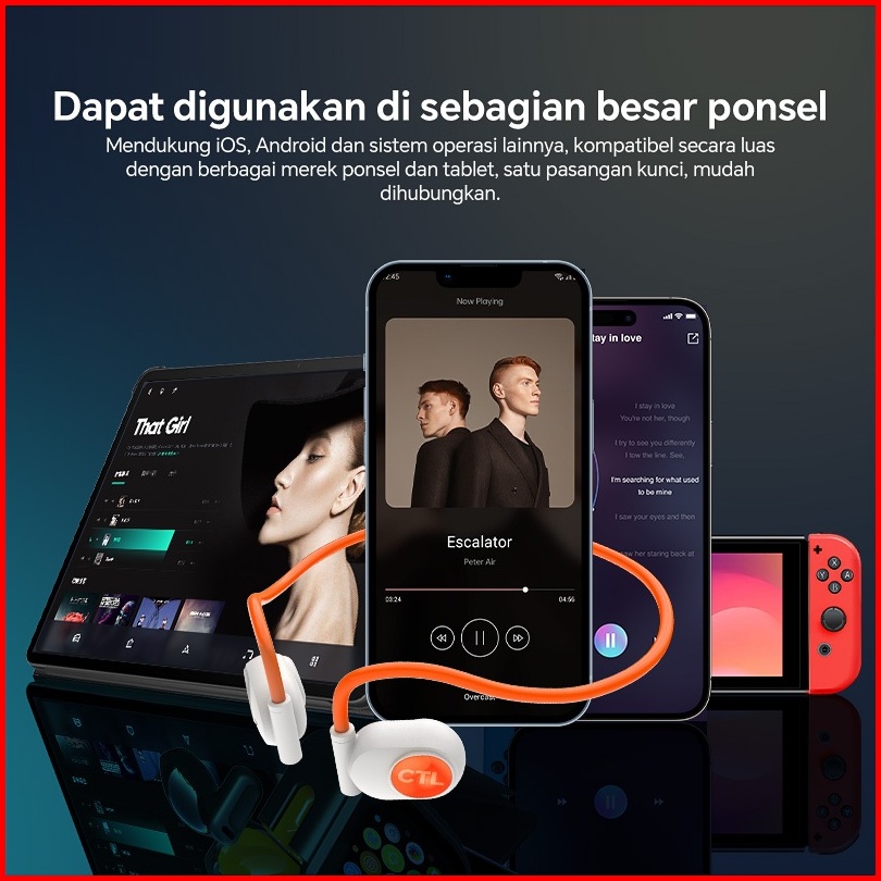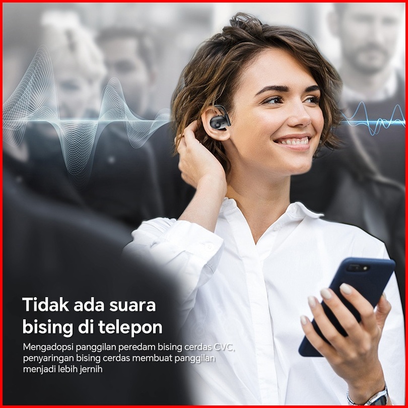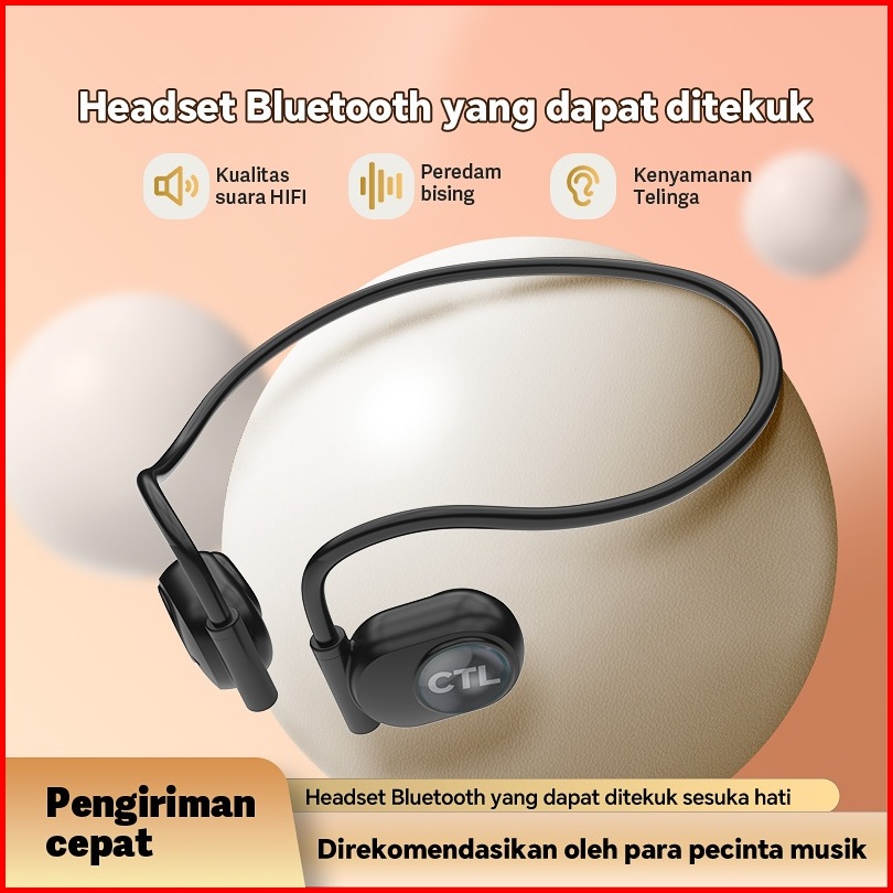 Headset Bluetooth Gantung Leher Nirkabel Dengan Konduksi Udara Tidak Masuk Telinga Untuk Olahraga Dan Lari