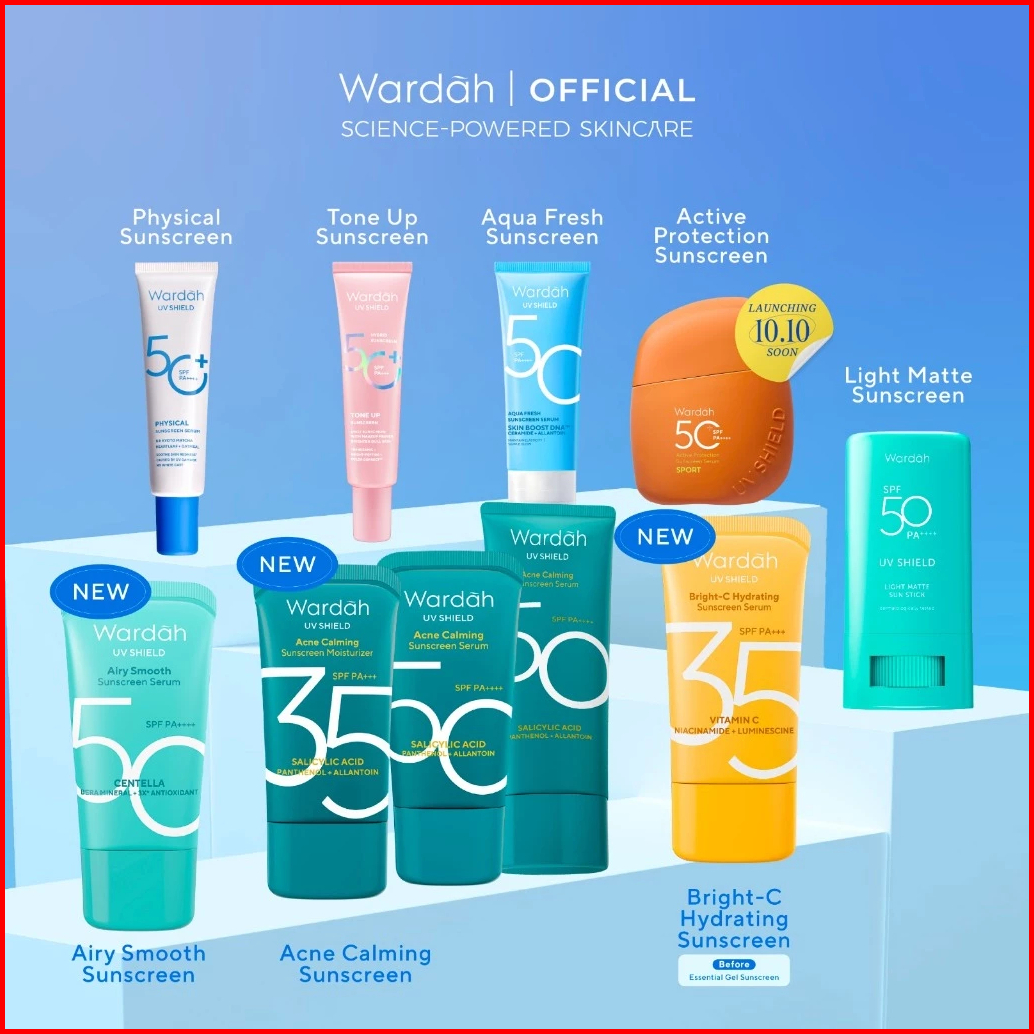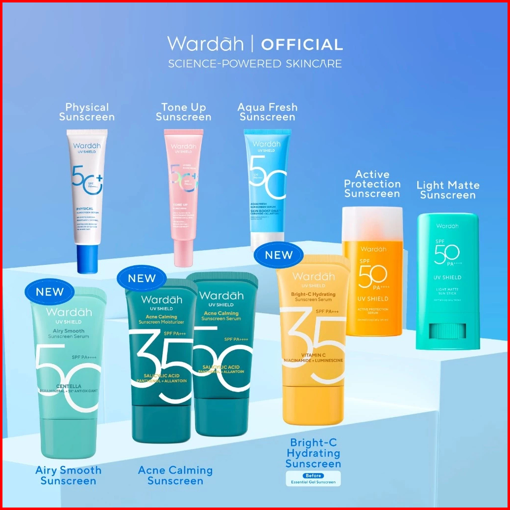Mfi - Wardah Sunscreen Uv Shield Series Spf 35 Aqua Fresh Spf 50 Active Protection Spf 50 Light Matte Sun Stick