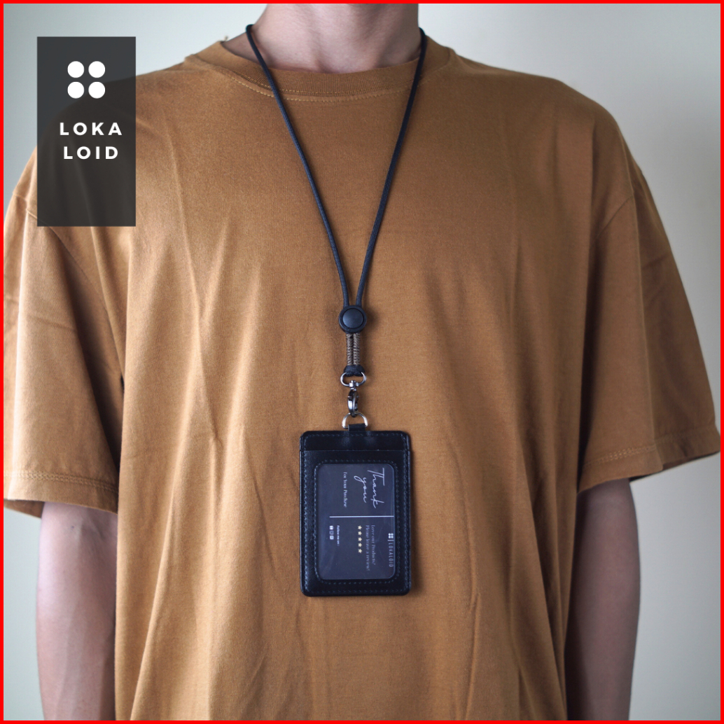 Lokaloid Casual Lanyard Id Name Tag Tali Gantungan Holder Id Premium Paracord Kulit Panjang Tali 50cm