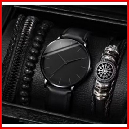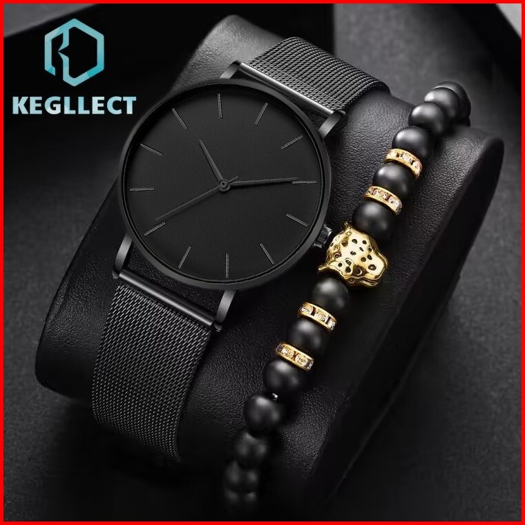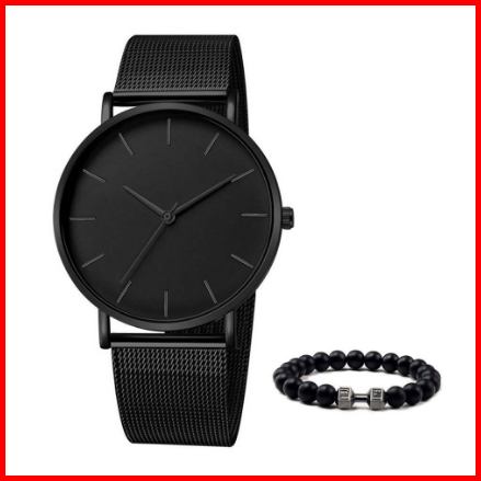 2pcs Jam Tangan Gaya Bisnis Pria Jam Tangan Mewah Klasik Ultra Tipis Jam Tangan Paduan Bisnis Fashion