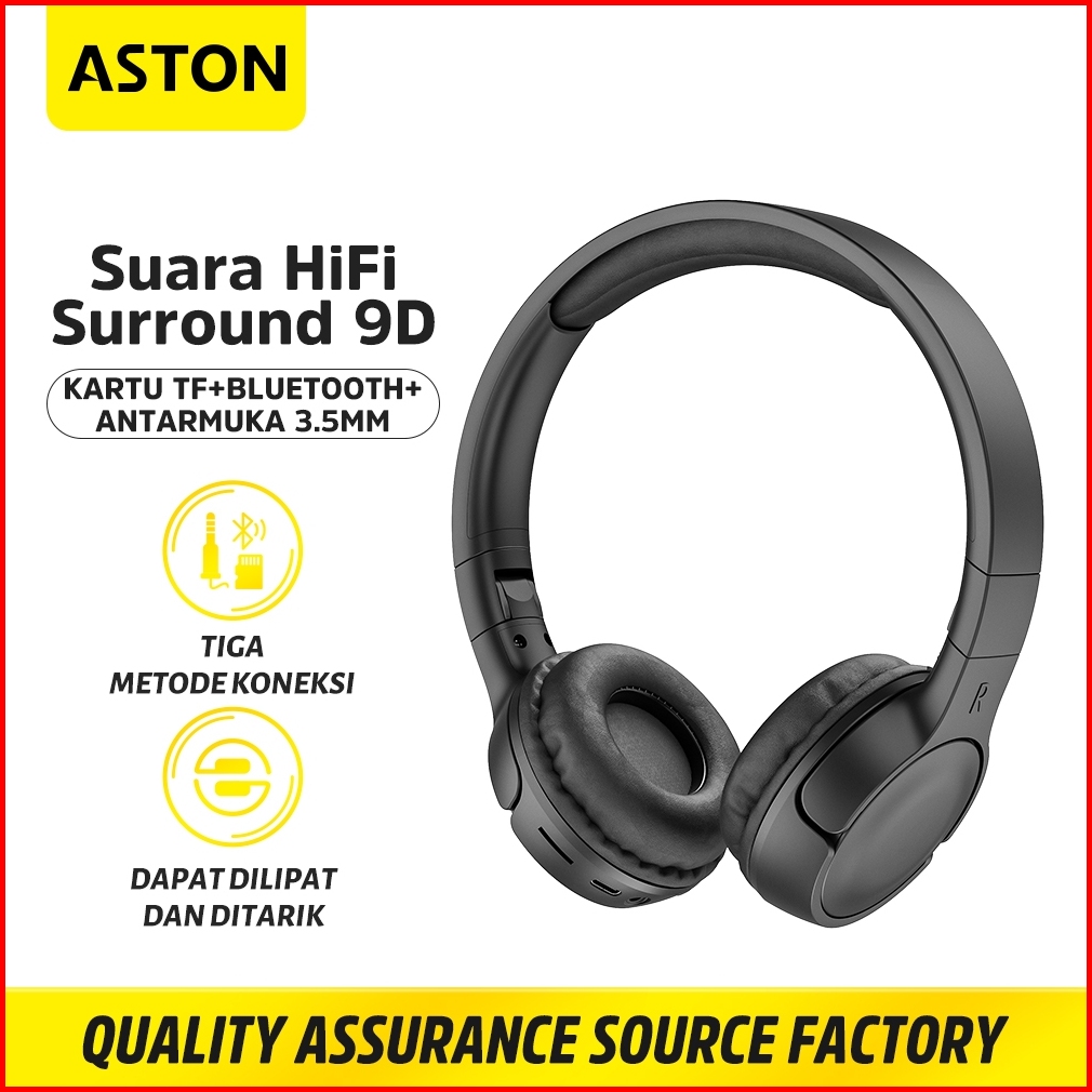 Hot Aston Headphone Bluetooth Wireless At-tw143 Black Musik Hifi Stereo Tf Card Noise Canceling