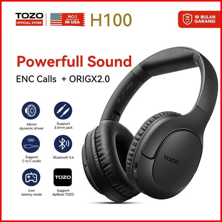 Tozo H100 Headphone Wireless Enc Clear Calls Bass Bluetooth 5.4 Aux