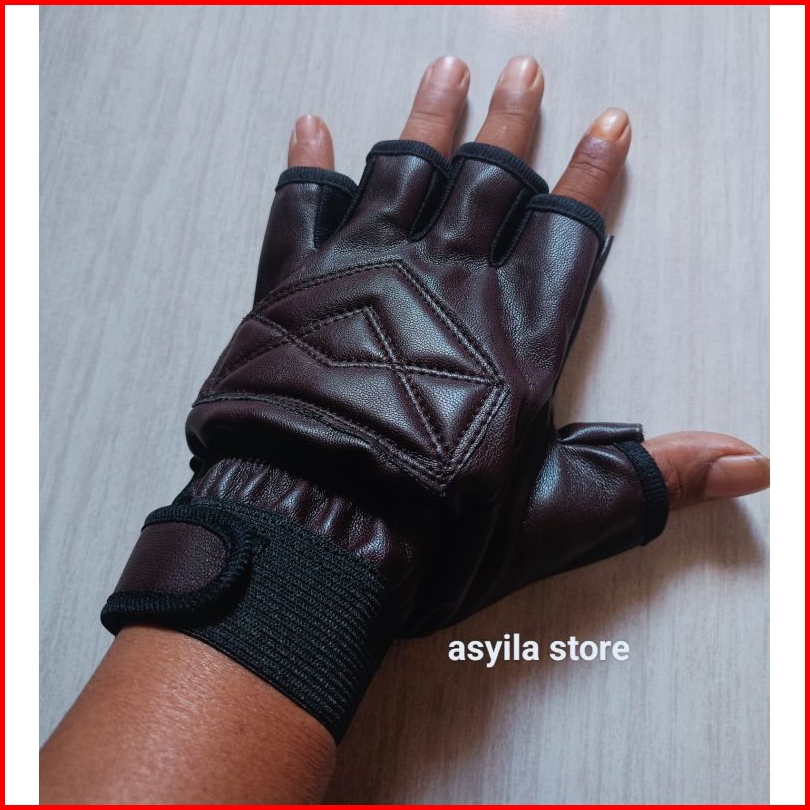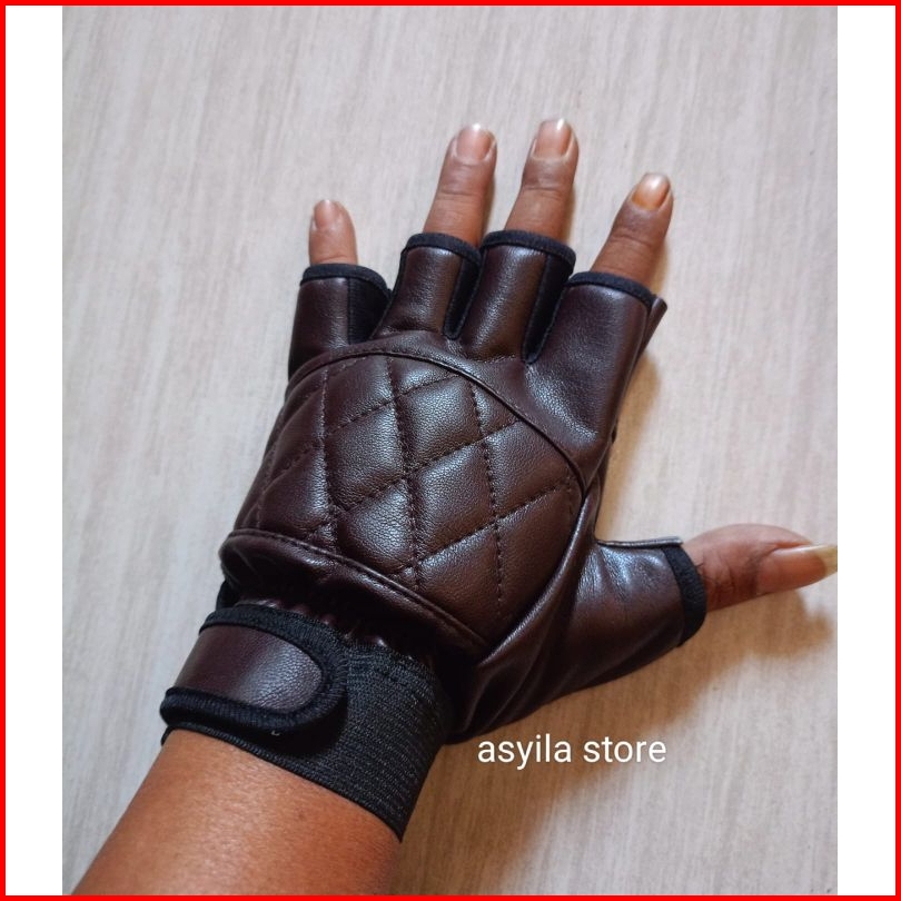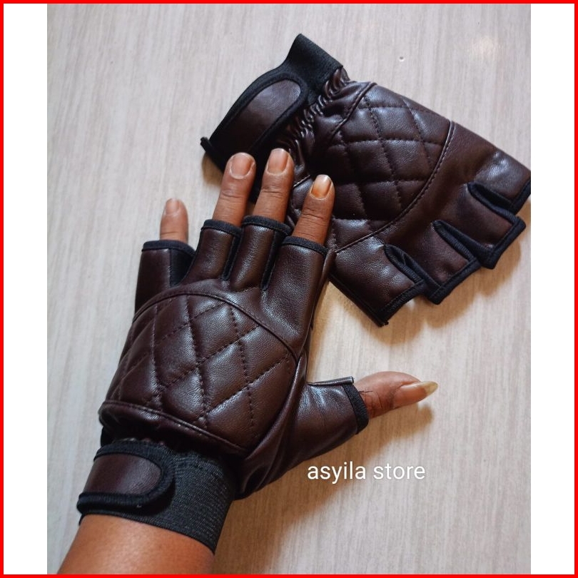 Sarung Tangan Motor Dua Jari Terbuka Kulit Sintetis Sarung Tangan Motor