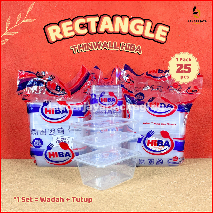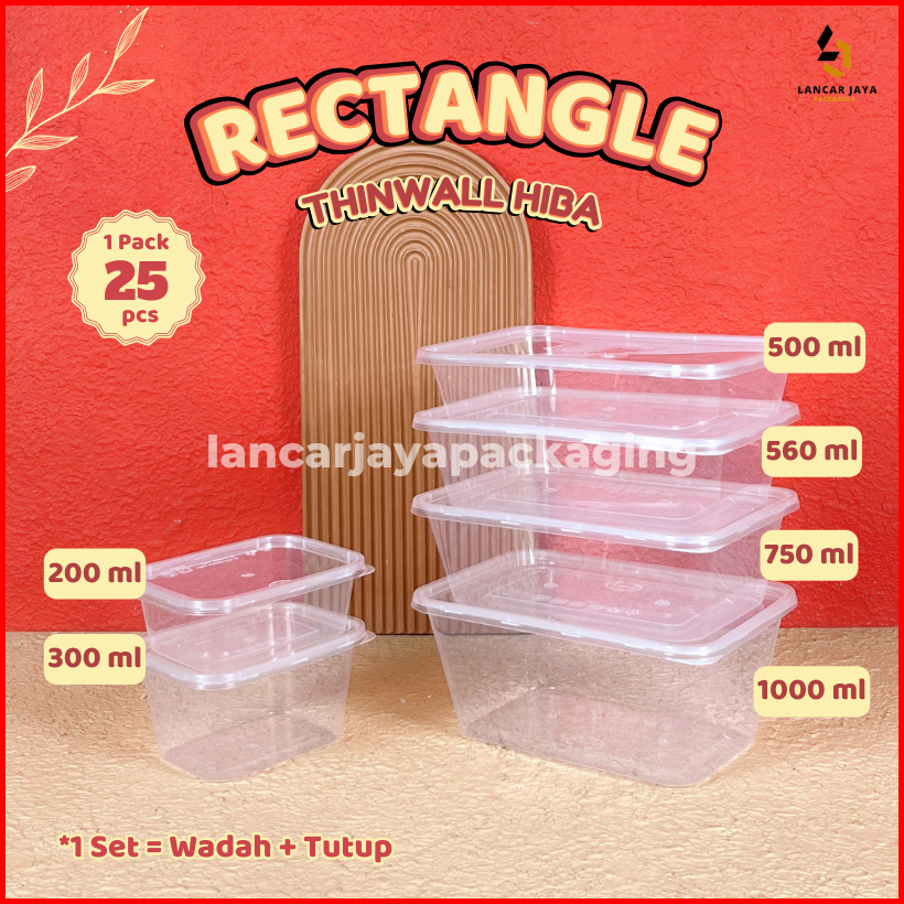 Hiba Thinwall Rectangle Kotak Makan Plastik Persegi Panjang Wadah Makan 200 300 500 650 750 1000 Ml