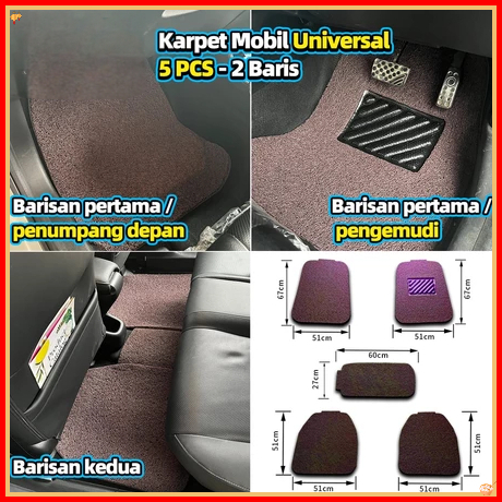 Aoying Karpet Mobil 5 Pcs 2 Baris Universal - Mie Bihun Pvc - Ketebalan 16mm Universal Bisa Diaplikasikan Ke Semua Mobil
