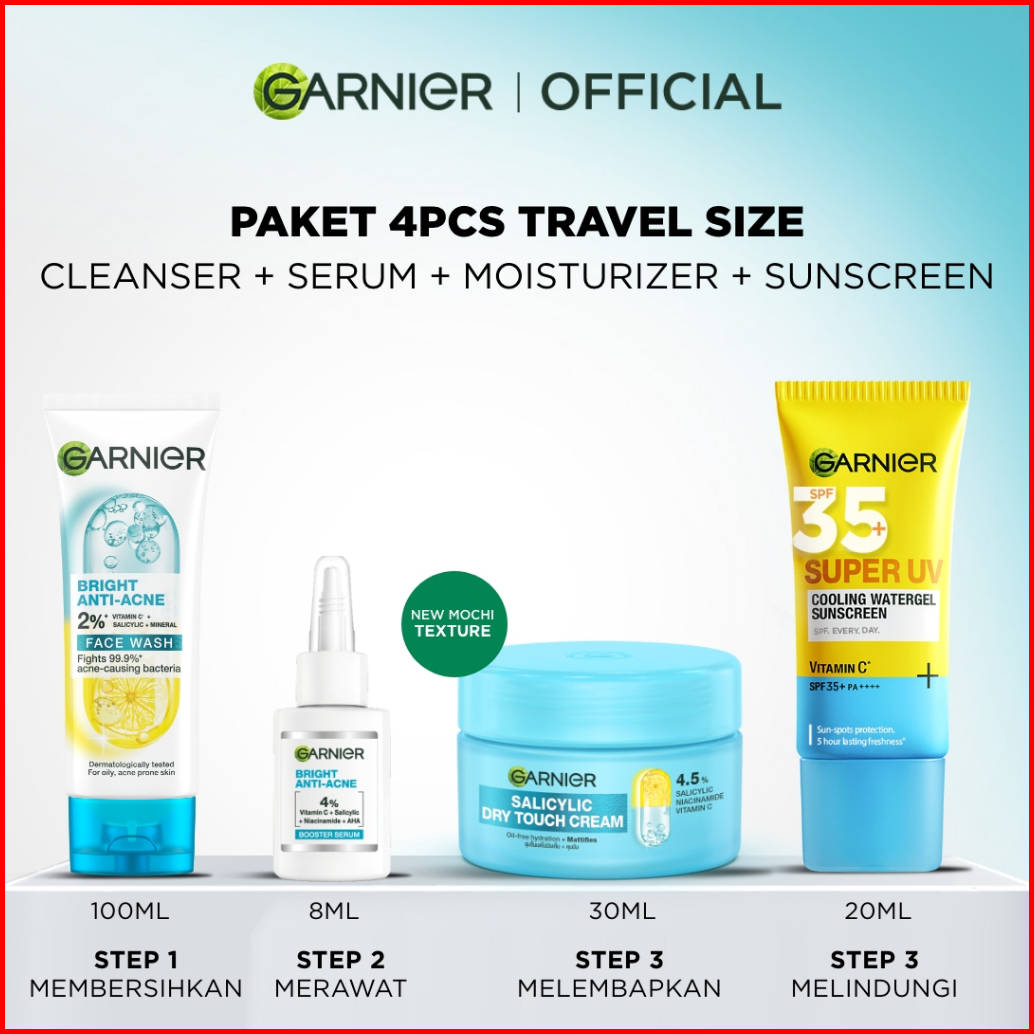 Paket Skincare Pemula Garnier Starter Kit Isi 4 Hanya 100 Ribu Bright Complete Anti Acne Untuk Kulit Berjerawat Brighten