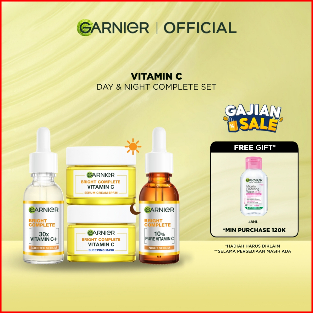 Garnier Paket Skincare 1 Set Lengkap Complete Kit Vitamin C Serum 30 Ml Overnight Serum 30ml Night Cream 50ml Day Cream