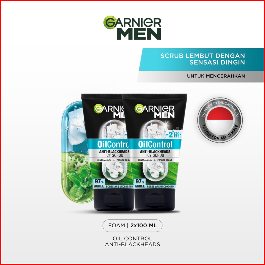 Paket Hemat Isi 2 Garnier Men Facial Wash Oil Control Anti Blackheads Brightening Icy Scrub Skincare 100ml Face Wash Sab