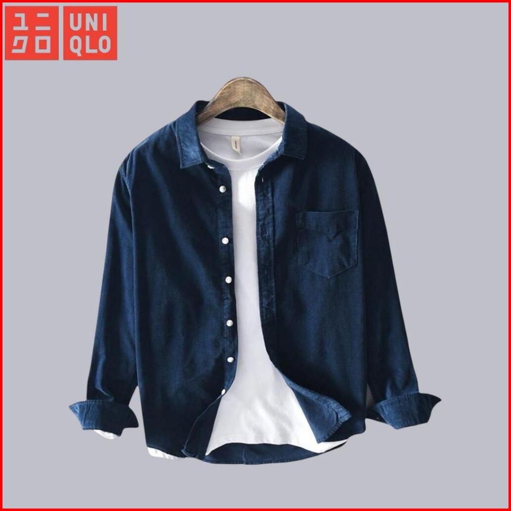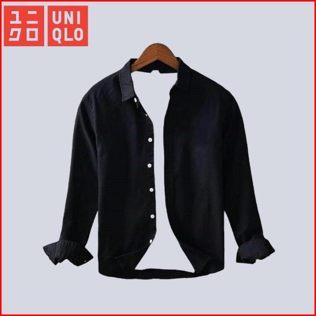 Uniqlo Kemeja Pria Lengan Panjang Putih Polos Formal Casual Slim Fit